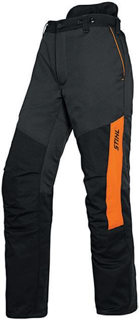 Viiltosuojahousut mukavalla hengittävällä materiaalilla korkealla työskentelymukavuudella, väri antrasiitti, musta ja oranssi. Täyttää EN 381 suojaluokan, hyvä liikkumavapaus. Piikkisuojaus lahdeiden etu- ja takapuolella. Tuuletuskangasta reisien tak