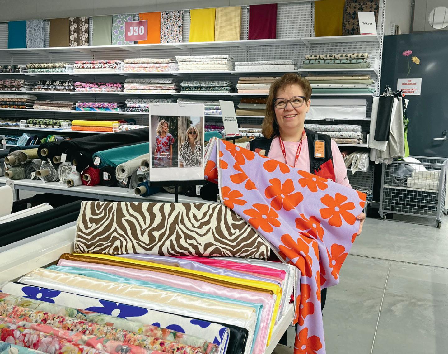 – Puuvilla on suosittu kesämekkokangas, ja trikoo ylivoimaisesti suosituin, siitä ompelee mekot arkeen ja juhlaan. Nykyään puuvillakankaissa on pääosaltaan luomupuuvillaa ja sen lisäksi pieni