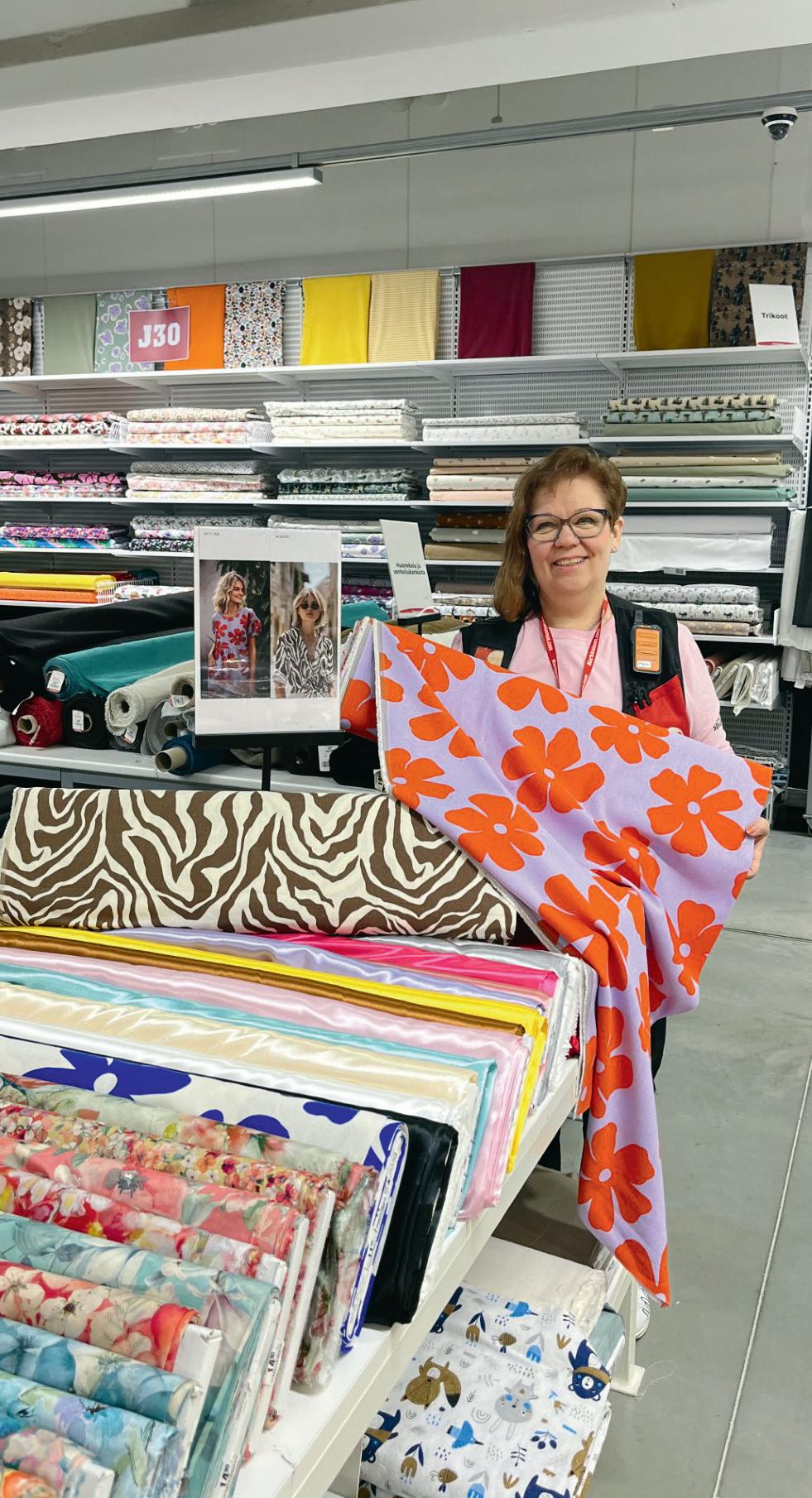 KESÄISIIN arki- ja juhlamekkoihin Kärkkäisellä on kankaita runsas valikoima monissa eri väreissä ja kuvioissa, niin aikuisten kuin lasten makuun.