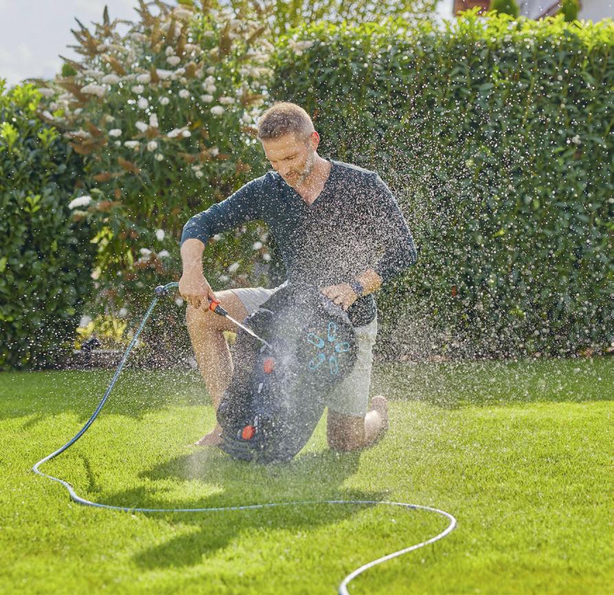 Vedenpitävät GARDENArobottiruohonleikkurit voi pestä vesiletkulla.