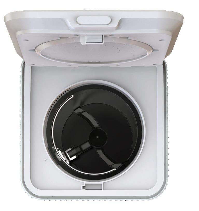puhdistajan avulla. Polypropeenista valmistettu, halkaisijaltaan 36-senttinen puhdistaja on reilut viisi senttiä korkea.
