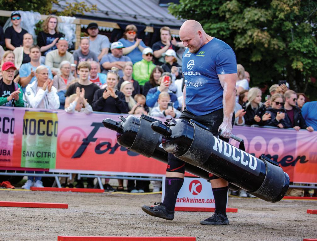 voitteet. Odotankin elokuussa huikeaa finaalia, kertoo Mehtälä. Viime vuoden finaaleja seurasi ennätysyleisö, reilut 5000; kaikki halukkaat eivät mahtuneet mukaan katsomaan. Markku Suonenvirran ja vuonna 2019 menehtyneen Ilkka Nummiston ideoimia Suomen Vahvin Mies -kisoja on järjestetty vuodesta 1987. Naiset saivat oman kisansa 2000. Viime vuonna kisojen vetovastuu siirtyi Suonenvirralta Mehtälälle, joka päätti panostaa kilpailutapahtuman näkyvyyteen sekä win win -tilanteen mahdollistamiseen yhteistyökumppaneille. Mehtälän strategia tuotti tulosta heti ensimmäisenä vuonna niin mukana olleiden kilpailijoiden, yleisön kuin yhteistyökumppaneidenkin kiinnostuksen suhteen. Kärkkäinen Oy oli tapahtuman yksi pääyhteistyökumppani myös viime vuonna. •