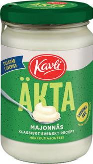 211390 Kavli 230 g Vegaaninen majoneesi Rapsiöljy, vesi, sokeri, etikka, muunneltu perunatärkkelys, suola, SINAPINSIEMEN sitruunamehu, sitruskuitu, aromi, säilöntäaine (E202), hapettumisenestoaine (E385), mausteet (mm. korianteri, kaneli).