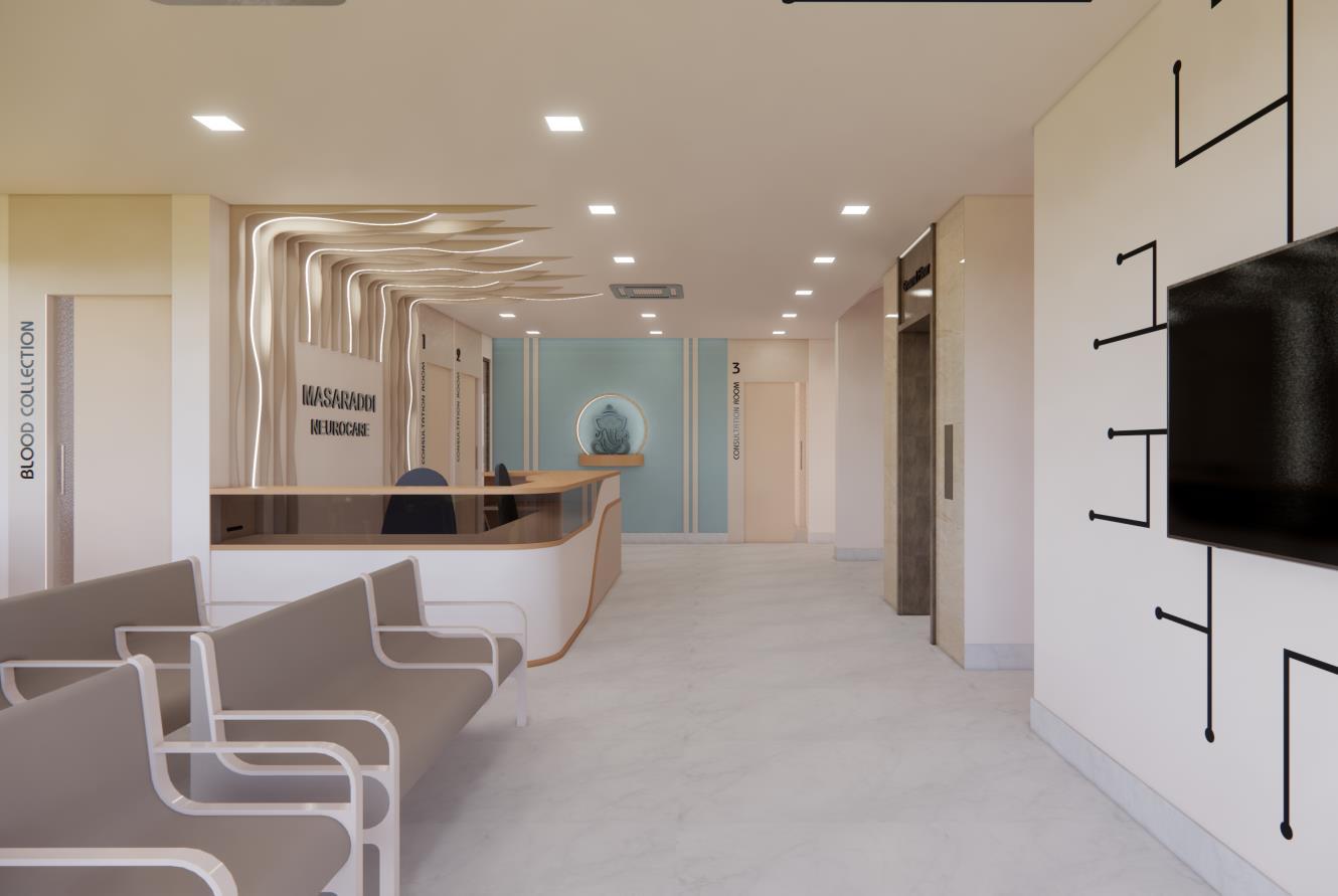 TV Unit: As per the client's request, the TV unit is designed to resemble the human nervous system, serving as an educational and informative element while fostering a connection to the hospital's specialty.