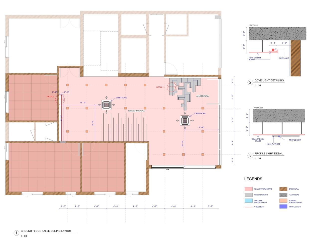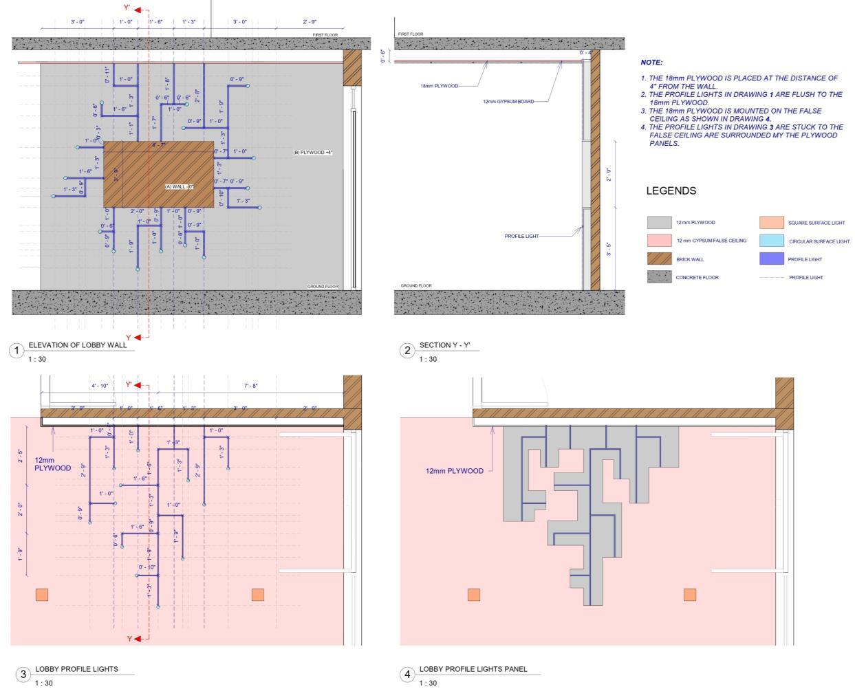 Reception Area: It has a background of a organic shaped MDF boards with Flexi Profile lights in few of the boards on the surface.
