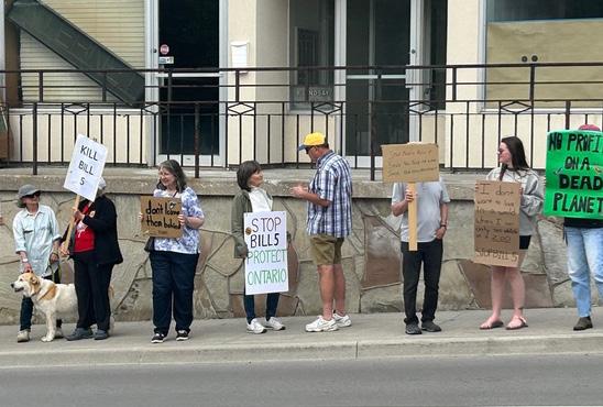 A protest by SCAN! Kawartha Lakes was recently held outside local MPP Laurie Scott’s office to oppose Bill 5, which was later passed by the provincial Conservative government.