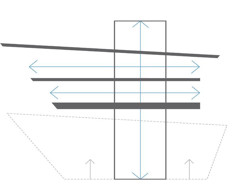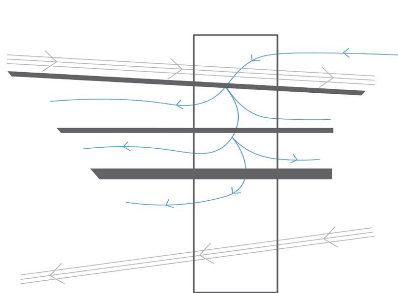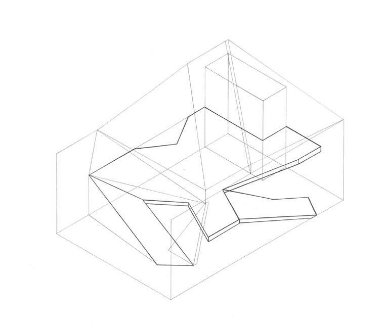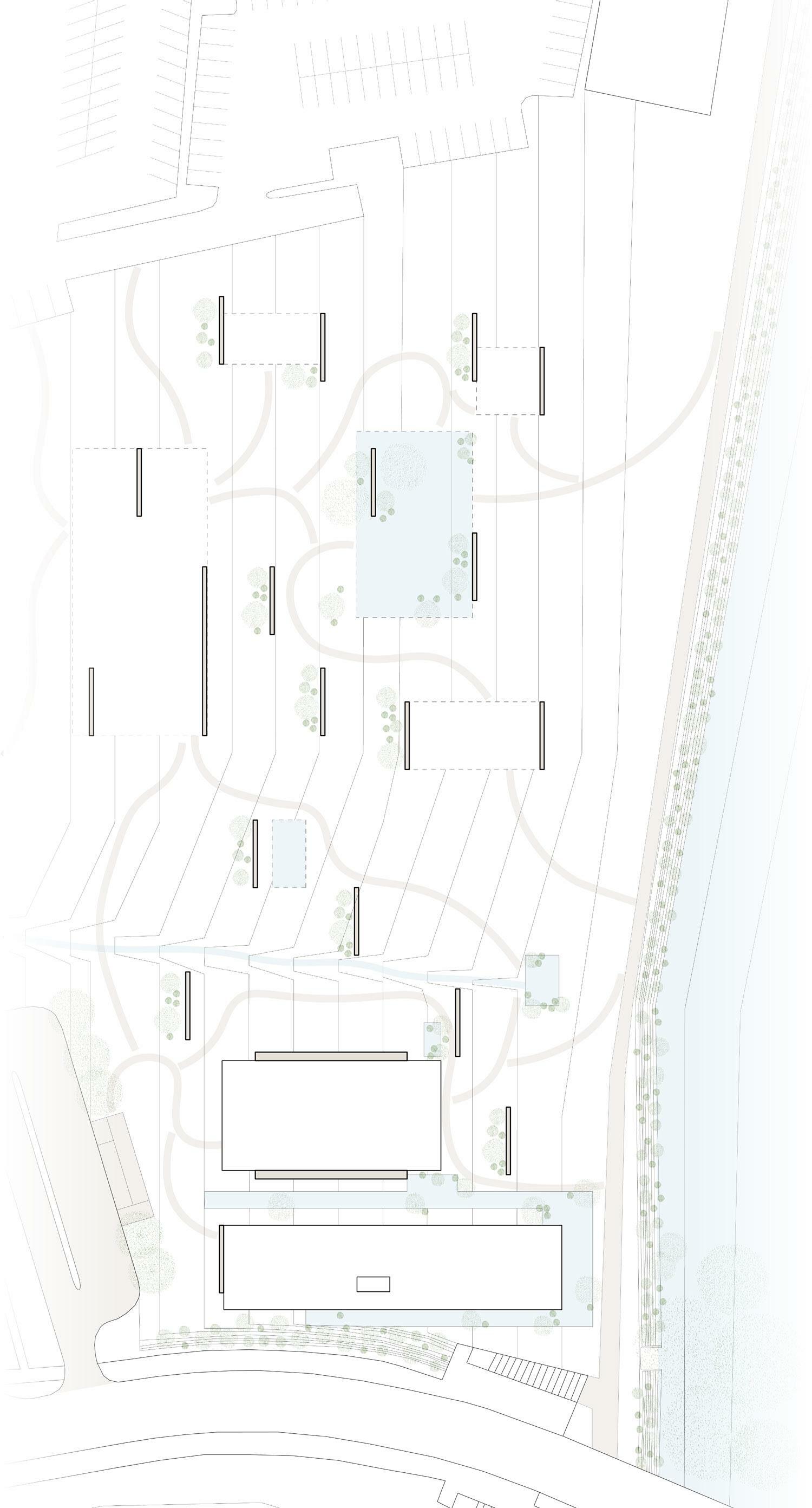 Combining the models of to disarrange, to wander, and nonlinear, the design features a new path through the site to allow for a shaded as well as quicker access to the other side of the existing path. To disarrange is shown through the disarrangement and stacking of the roofs. Some of the structures are pulled apart from the path for inhabitants to take a break from walking/biking. Each disarranged roof features a bench or a table for people to sit, eat, talk or relax in shade with the breeze flowing from the Southeast. To wander is presented through the new path itself, wandering off the existing path and into the new path. Nonlinear is illustrated through the form of the open and closed roofs of the design.