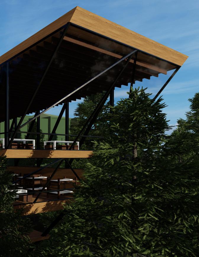 The design of the Planetary Health Science Learning Center emerged through the process of analyzing the environment, researching planetary health science and considering universal design principles to influence the form, program, and experience of the space. The analysis of the environment led to the design decision to lift the form above the ground to fully take in the views of the trees that surround. In order to create this design, the use of a full truss system and a vertical circulation core enables this design to float amongst the trees. This process led to the discovery of planetary health and how this science calls for humans to appreciate the land in order for the land to be minimally disturbed for future generations. Therefore, the theme of efficiency furthered the design through the use of a free plan, considering environmental properties like air flow and using spaces for multiple functions. Lastly implementing an equally accessible experience by considering the universal design principles allows for all users to visit the design and appreciate the environment that surrounds, ultimately leading to human growth “For a Better Future.”