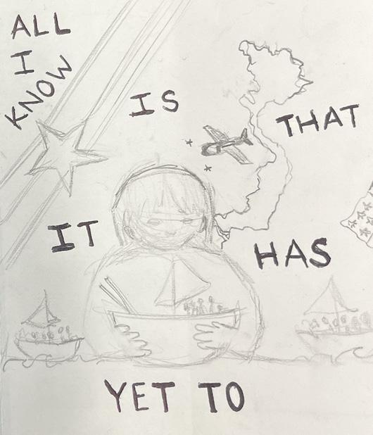 skin lightened as she aged – now closer to the color of a white sand shore, entirely untouched by the waves – she associates stories of her childhood to each of the scars on her legs. Resembling the mysterious craters of the moon, the scars traced the routes she would walk and the branches of the mango trees that she climbed. She recounted spending the simple days rolling around in the dirt and grass with her brothers and sister. Despite the cruelty from the playground kids and the judgmental insults from critical aunties, the freedom of childhood remained rosy in her memory.