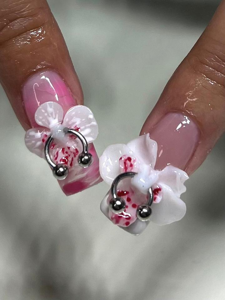 pierced orchids created using 3D sculpting gel and a real septum piercing