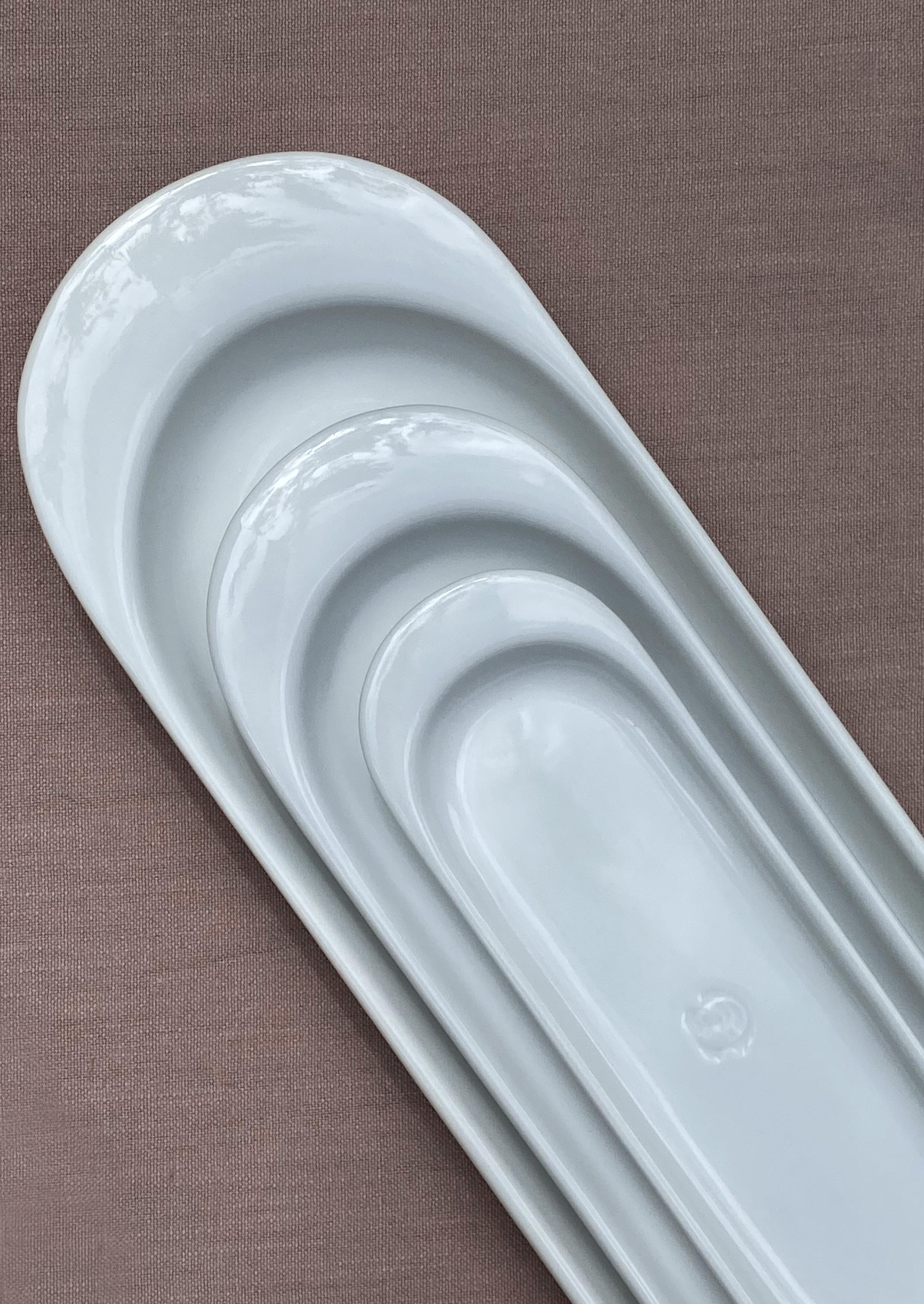 WING fadene er delikate og svævende i udtrykket, skabt med elegante kanter, som gør dem nemme at løfte og bære. Porcelænsfadene har et utal af funktioner, når de kombineres eller bruges individuelt. De er naturligvis oplagte som serveringsfade på bordet, men også yderst velegnede til håndsæbe ved vasken eller salt- og peberkværn i køkkenet, foruden til opbevaring af smykker eller skrivebordsartikler.