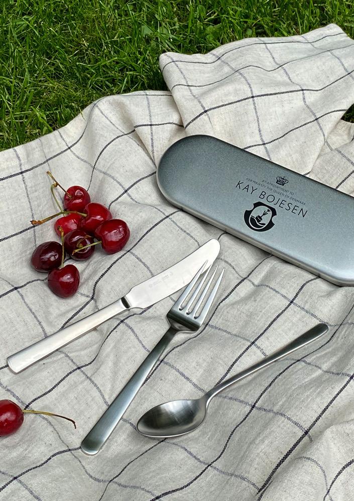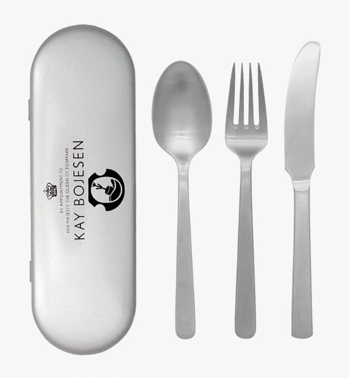 Kay Bojesens rejsesæt gør det nemt at have godt bestik ved hånden, når man er på farten, på picnic, på festival eller ude og rejse. Det praktiske sæt henvender sig til alle livsstile og skal gaven gøres ekstra særlig, kan metaletuiet skræddersys med et udvalgt budskab, logo eller farve.