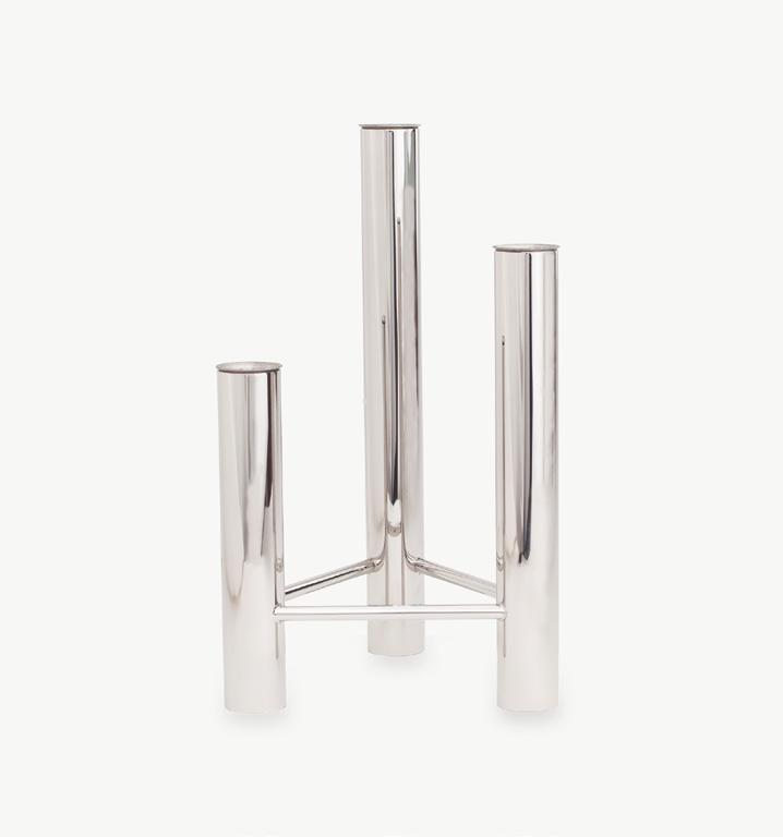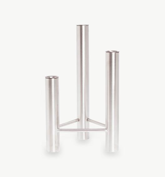 Den kan anvendes til stemningsfulde stearinlys, dekoreres med friske blomster og grene eller til en kombination af begge. Multifunktionaliteten gør at udtrykket kan personliggøres og varieres i det uendelige. De tre cylinderindsatser er udtagelige, så de nemt kan renses og fyldes op med vand.