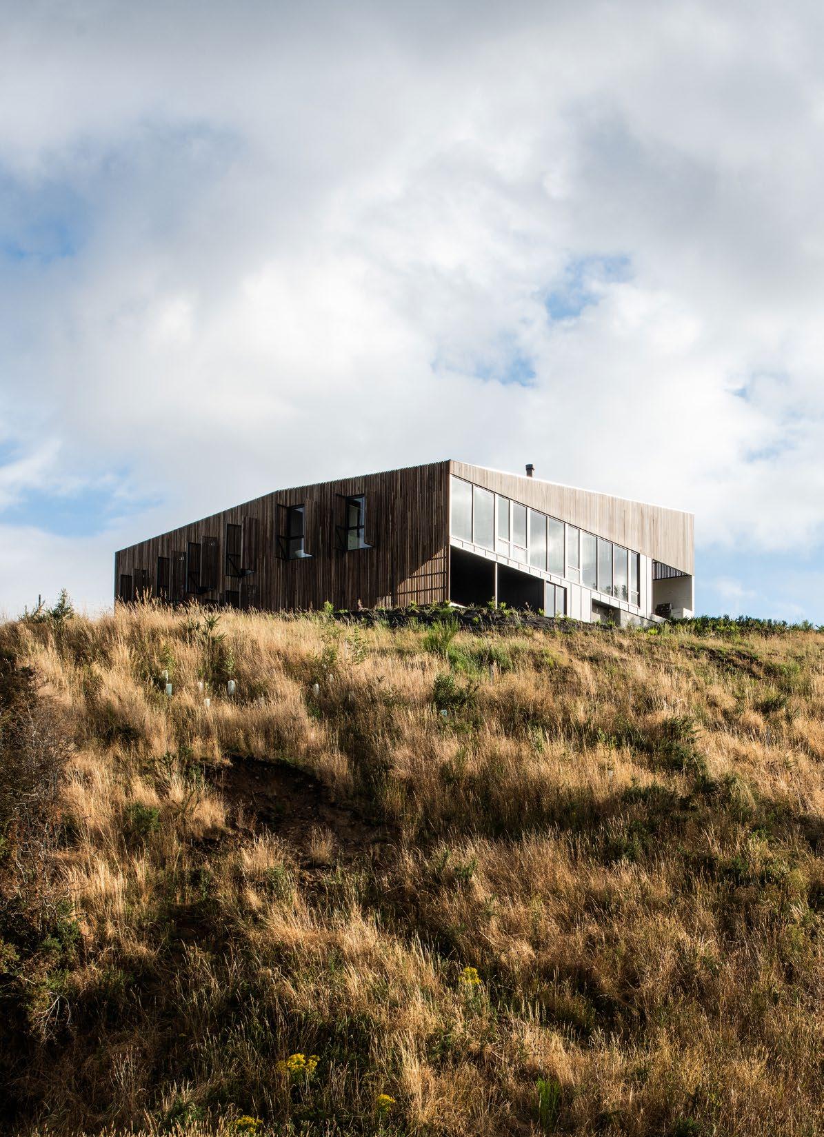 Embracing architecture in its lightest form, the gabled structure appears pitched like a tent on splayed steel legs.
