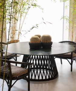 Fendi x Piero Lissoni Ohe outdoor table. This marble-topped coffee table (pictured in Verde Alpi) exemplifies sophisticated design. Inspired by the lush scenery of the Philippines, the table has been crafted with woven bamboo cane and rattan, while the sleek marble tabletop—available in a choice of finishes—features an engraved logo design. Marrying form and function, innovation and durability, it's sure to bring a touch of tropical charm to any outdoor space. POA. palazzocollezioni.com.au