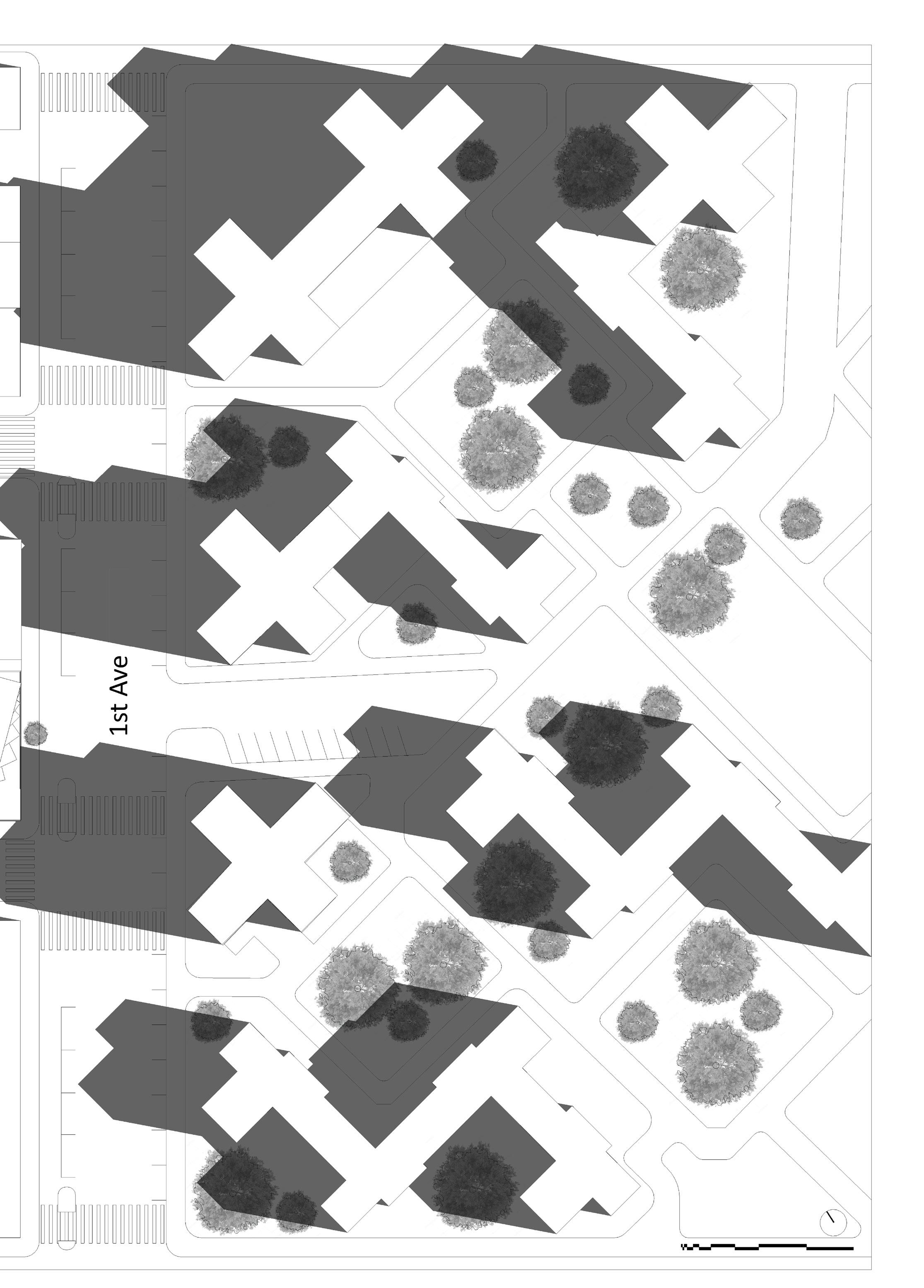 This design was intended to capture the views of East Harlem from every apartment space. The main views captured are of the trees across 103rd St and between the existing apartments across 1st Avenue on the lower levels, looking down 1st Avenue on the middle levels, and the JFK bridge from the top floors. The fanned out levels that turn at 10 degrees from the 4th floor to the 10th floor, pivoting around the stair core, allow the views to be captured and for each level to have a shared balcony on the backside. In the first and second floor, there is a daycare, gym, and classrooms for public use. The classrooms are intended to provide support for the high rate of teen pregnancy mothers (133/1,000 births) of East Harlem to have motherhood classes, while in a close proximity to a daycare and other classes such as mommy and me to prepare them to raise their children. There is also a different ammenity on each residential floor to provide communal spaces for the residents there to enjoy. The construction of this building is precast concrete and a unitized window system to allow for quick construction. Although each individual has a different view of the world, this aparment allows a sense of community, with something for everyone, in the midst of a busy city.
