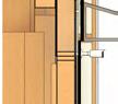 The rectangular mass is split into two parts to enhance interaction spaces and improve fire safety through easier evacuation.