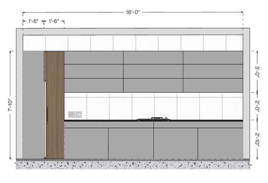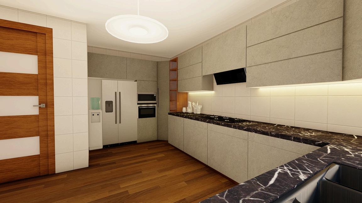 Two modern kitchen projects: one focused on layout and sectional efficiency, the other on a rendered interior. Both explore functionality, light, and material as the core of everyday design.