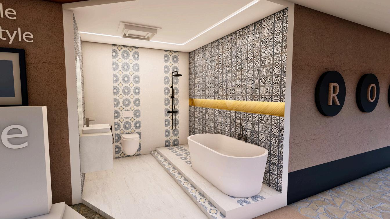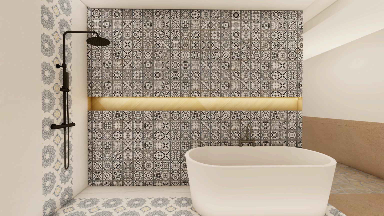 A bath SAbdulla Competi selected space. T layout w patterns, modern i