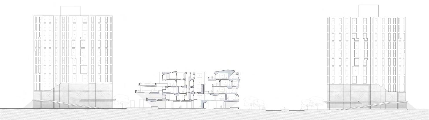 MTA a scale1/16 eastelevation MEETING GRADE6 VICE PRINCIPAL WAITING GRADE7 PTA WC STAFFLOUNGE GRADE6 PRINCIPAL JANITOR EXAMNURSEOFFICE ROOMMEDROOMS RECEPTION GRADE7 PYSCH. VERONA DELAVANST scalesectionb 1/16 buildingprecedent 21 22 23 VERONAST 03 HOUSING WITH REDEVELOPMENT FARRAGUT HOUSES, NEW YORK The studio’s primary area of interest was modern urban architectural features. Introduction to the interactions between urban form and its material attributes in particular. Designing from the outside in allows for the coordination of concerns like mixed land use, composite building use, transportation, and the environment through the unique characteristics of a building enclosure and site. CONCEPT All the apartment units are connected with a common shared space area which also acts as the circulatory pathway. The main idea was to have an interactive space in the middle which can connect all the liveable spaces of the mass. The common shared space is designed in such a way that it receives maximum daylight and ventilation with very minimum dark spaces. The massing and the apartments even has thick poches which creates a sense of forest forming a relation between the exterior and the interior. This sense of forest creates a sense of mystery and changes the experience of the site for the users. It is a low cost housing for the farragut users where per floor has one bedroom, two bedroom and a three bedroom apartments with balconies and break-out spaces. 13 14 THE FOREST