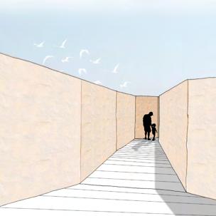 Interaction with the wall built by the prisoners, leading to the final resting place where they can ref;ect and speak about their journey and experiences.