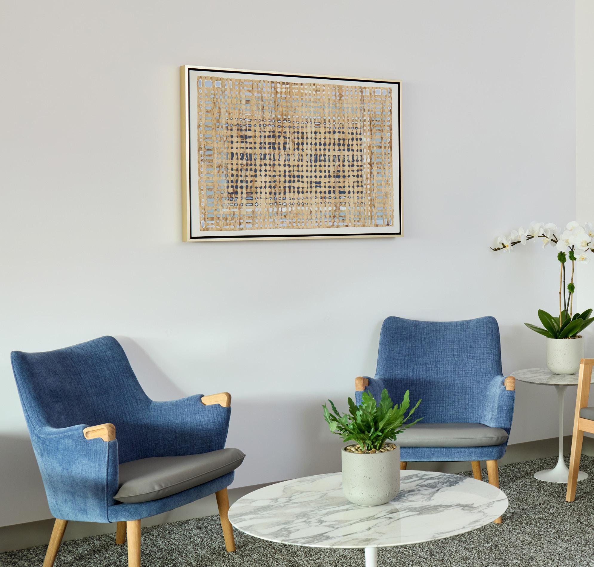 STEFANO MAURO / A stark, sterile white wall can feel unwelcoming and impersonal. We view each wall as a canvas, using artwork to transform our spaces and promote healing. Through thoughtful selection and placement, art brings warmth, comfort, and inspiration to our environment, supporting the well-being of everyone who enters.