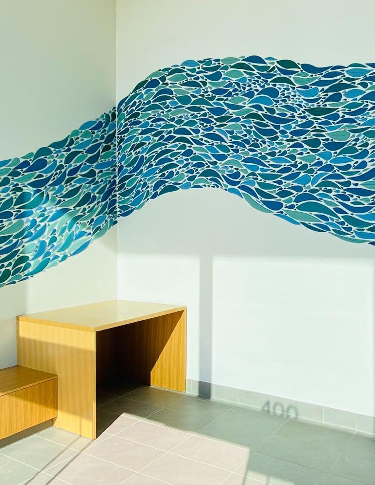 for KBAA, this framework begins with listening. We work closely with clients to understand their goals, narratives, and the communities they serve. from there, we curate and commission artwork that is intentionally placed for impact, whether through integrated wayfinding moments or experiences designed to help reduce stress. Insights gained from one project often inform the next, allowing ideas to evolve and deepen over time.