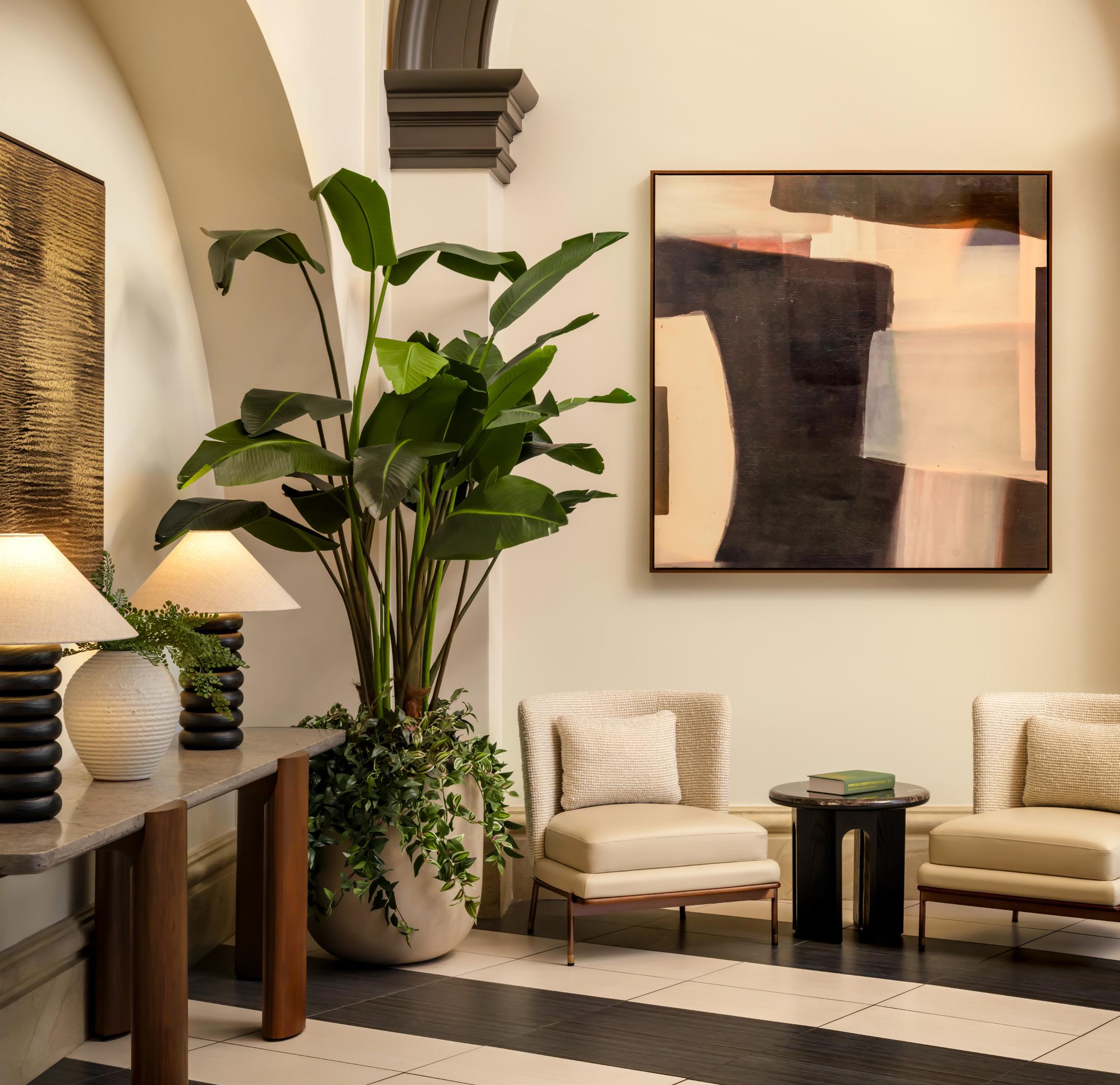 Inspired by local flora such as the golden poppy, California buckwheat, black sage, and sycamore trees, we echoed these influences through abstract landscapes and restrained visual cues. The result is an art program that feels rooted in Pasadena without being literal, offering a natural continuity that flows from floor to floor.