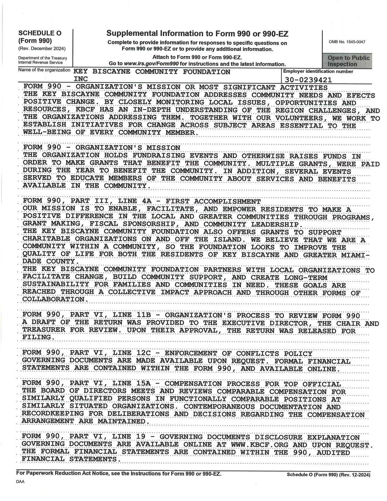 2024 Tax Return Form 990 by Key Biscayne Foundation - Issuu