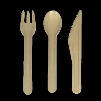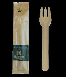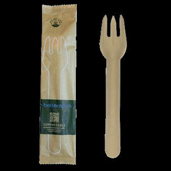 6" Pressed Fiber Fork + Bamboo Paper Wrapper