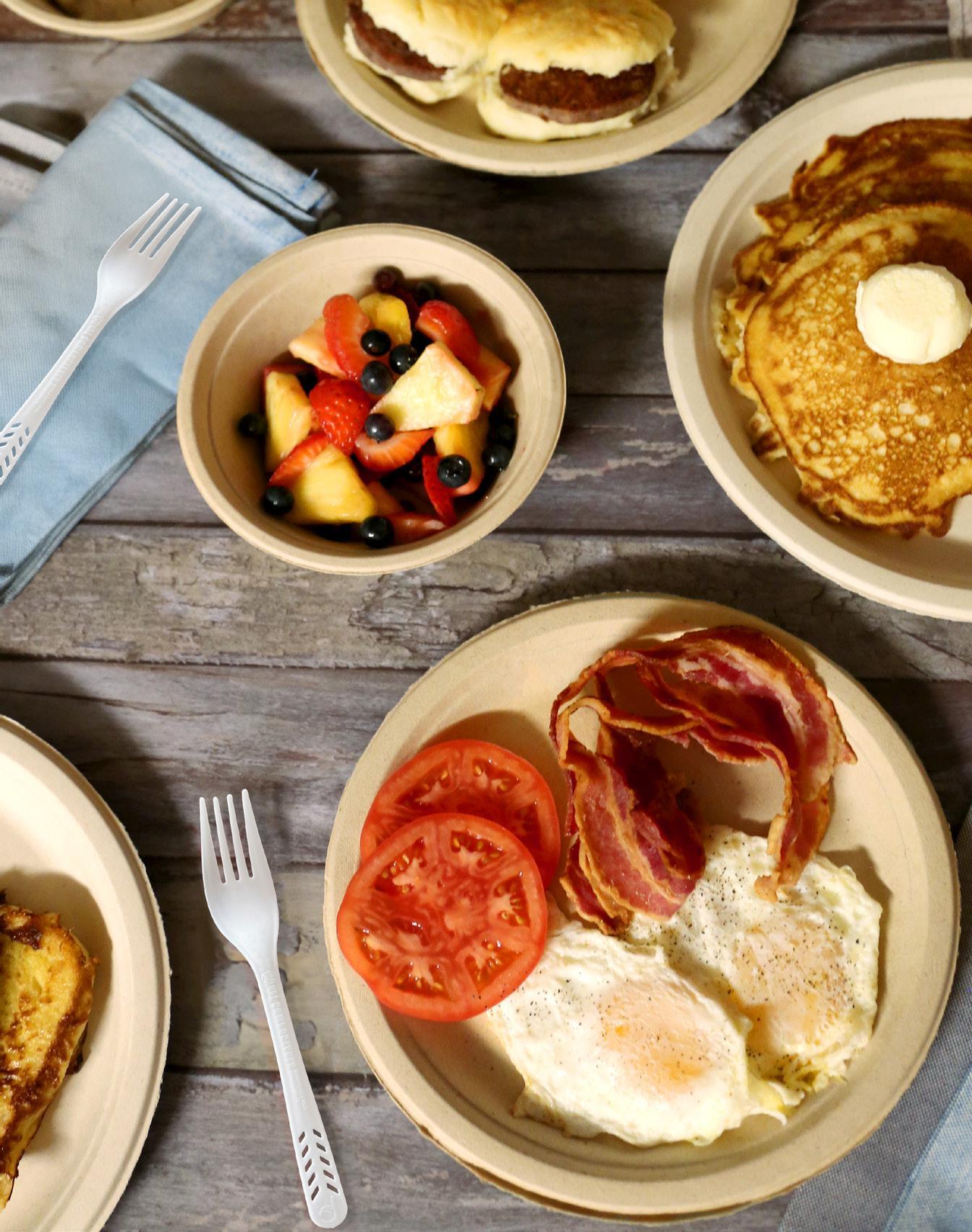 Better Earth offers the most innovative and extensive collection of molded fiber foodservice packaging on the market, all of which is tree-free, certified commercially compostable, and made with renewable fibers such as perennial grasses and bamboo. Whether your customers dine in or on the go, our plates, bowls, clamshells, two-piece containers, trays, and more offer just what you need to pair durable sustainability with the quality of your food.