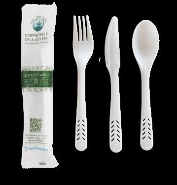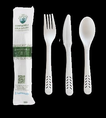 2. White Compostable Fork, Knife, Spoon, Napkin BE-CKMW