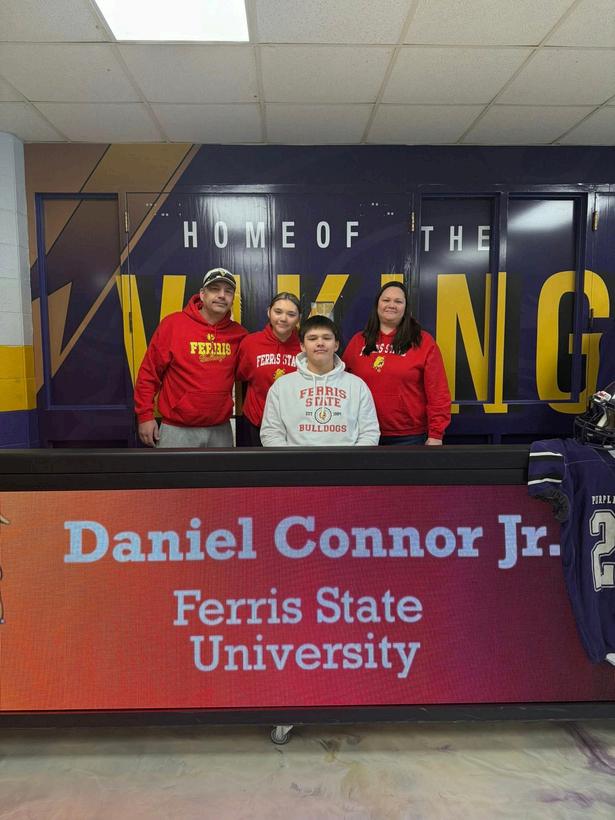 KBIC Youth Daniel Connor, Jr., joined by his family, officially signed his letter of intent to play football at Ferris State University.