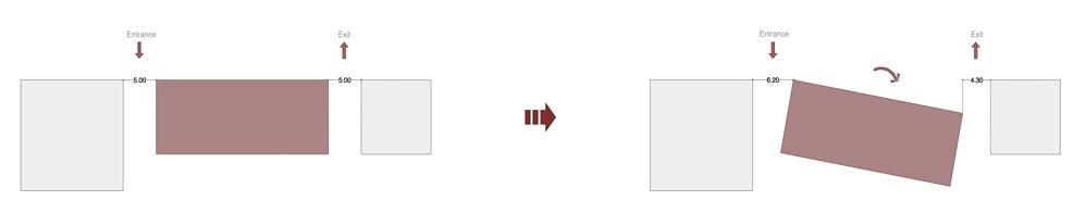 The building’s alignment with the natural site slope.