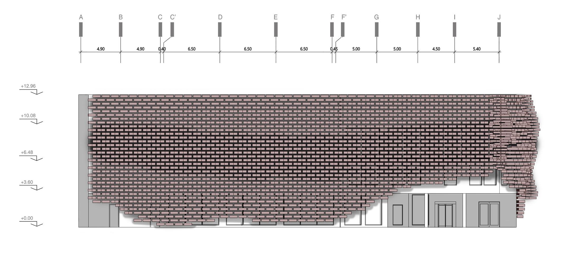 Illustrates the building’s elevation changes, highlighting the impact of variations in height on the overall form. The adjustments are designed to balance both functional needs and aesthetic appeal, shaping the spatial experience.