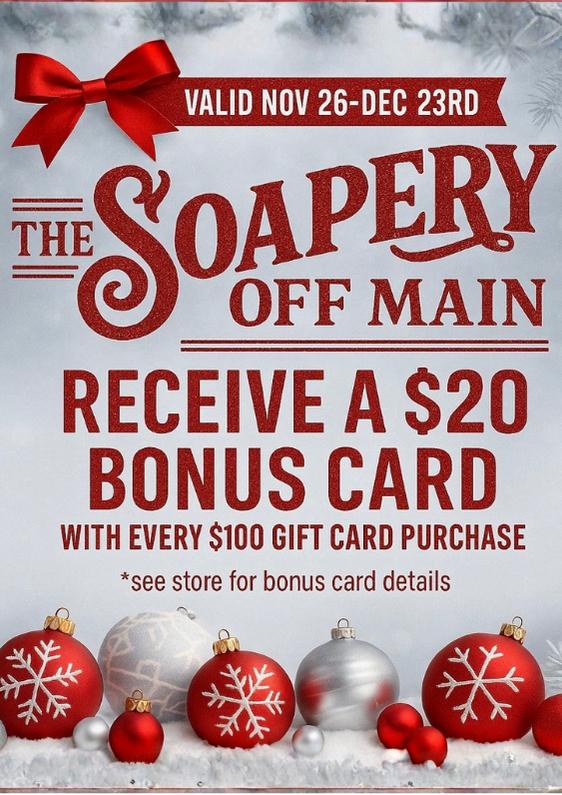 At The Soapery Off Main you can shop locally made body care with everything from lotions and bath bombs to shower steamers and shampoo bars. We have a wide array of unique bath accessories and Gift Baskets!
