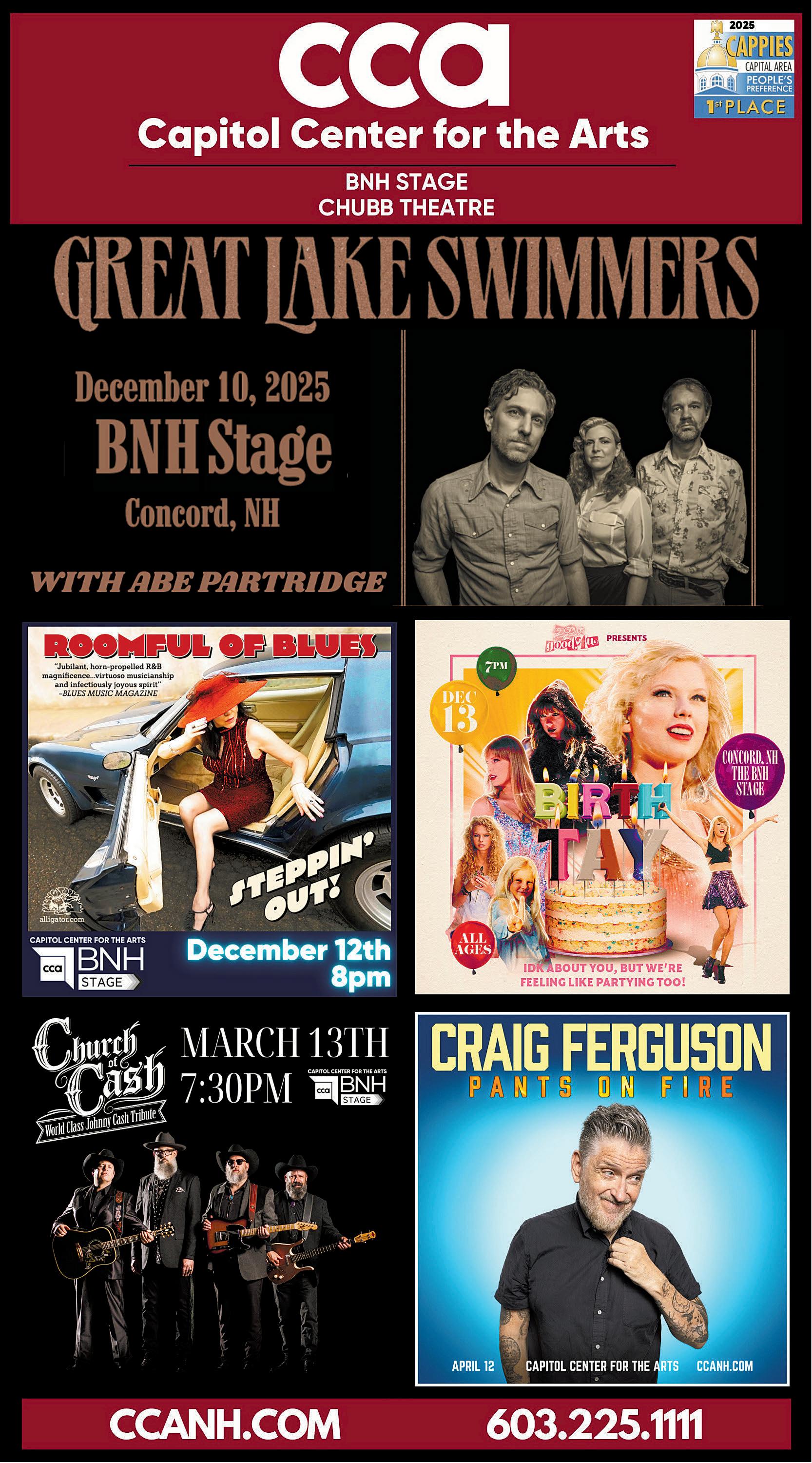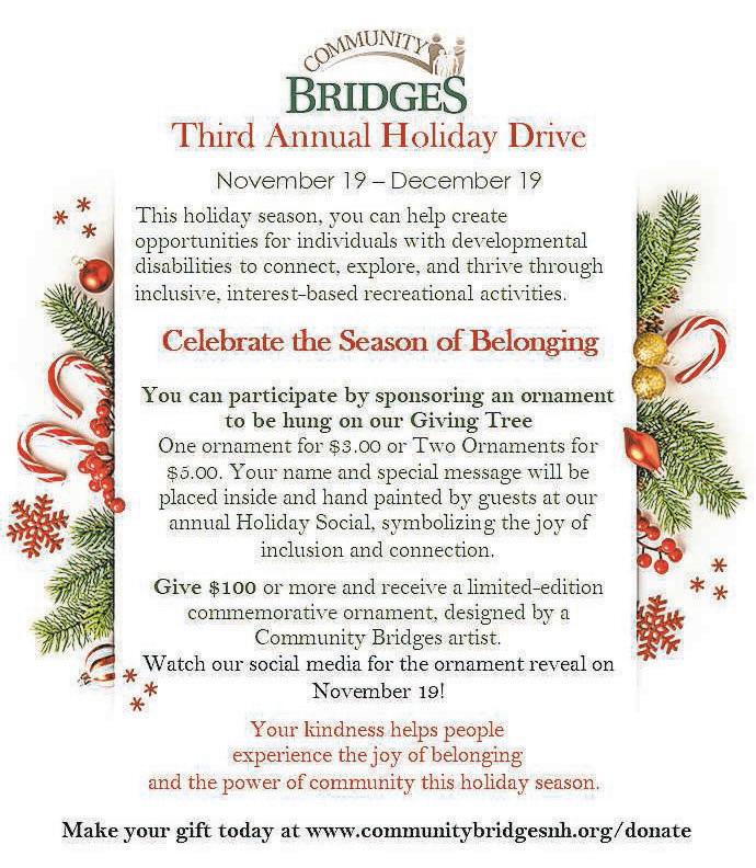 TheGraniteState Ringers,aConcordbasedhandbellchoir, ispleasedtoannounceits Holiday2025ConcertSeries,entitled“AThousand LightsAreLit,”featuring concertsatLivingHope ChurchinLaconiaonDec. 6,atStarTheatreinKittery, MaineonDec.7,at SandownTownHallonDec. 14andattheUnitarianUniversalistChurchinPeterboroughonDec.20.Ledby directorJoanFossum,this holidayconcertserieswill delightattendeeswith classicfavoritesaswellas somenewselectionssureto please.