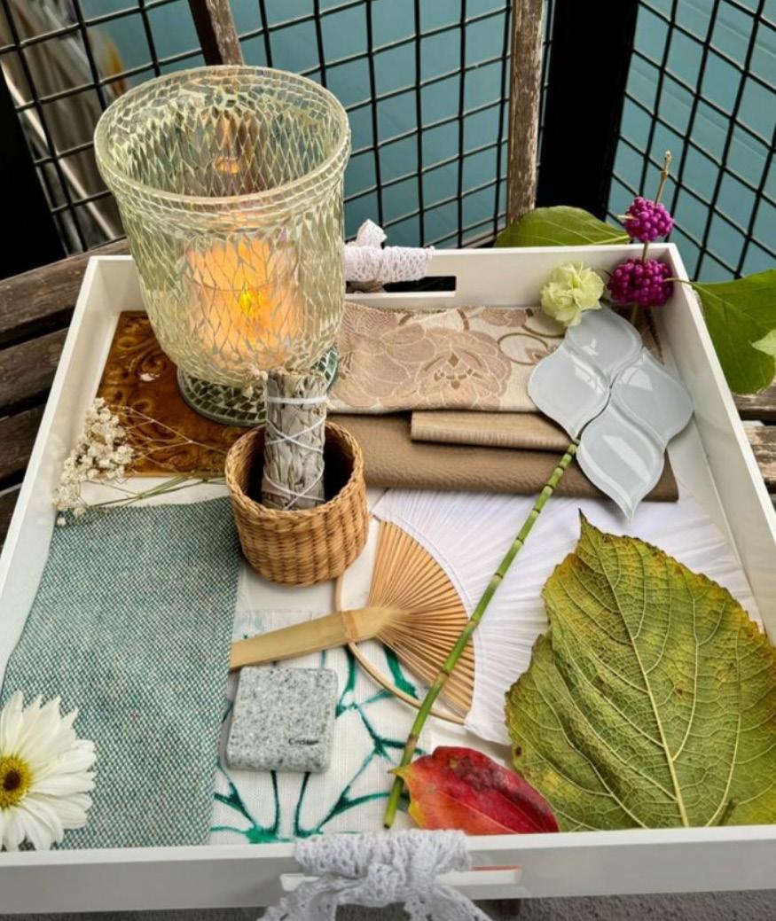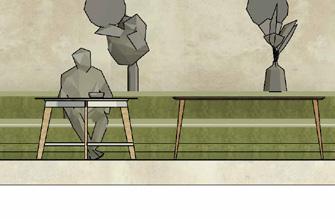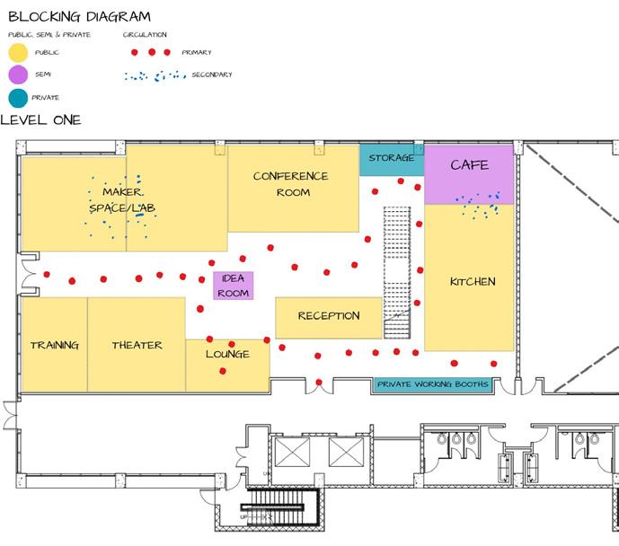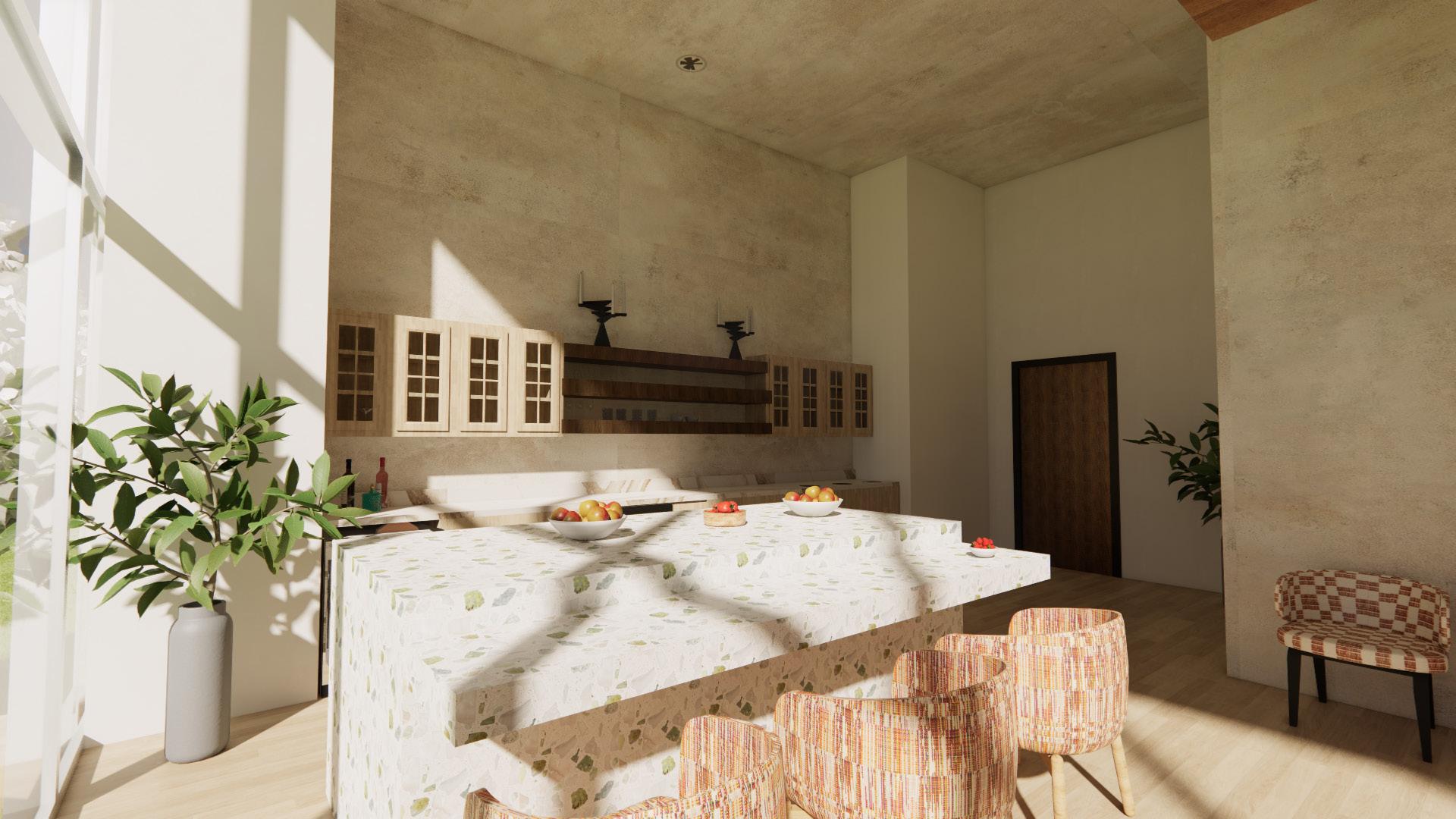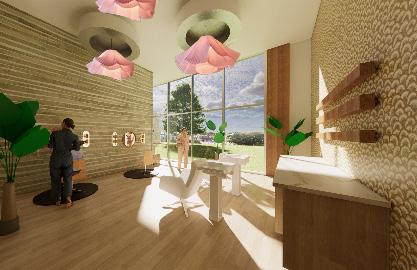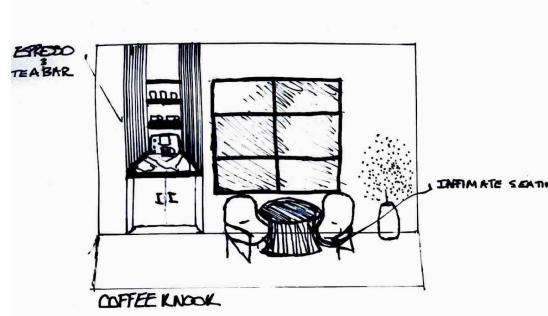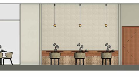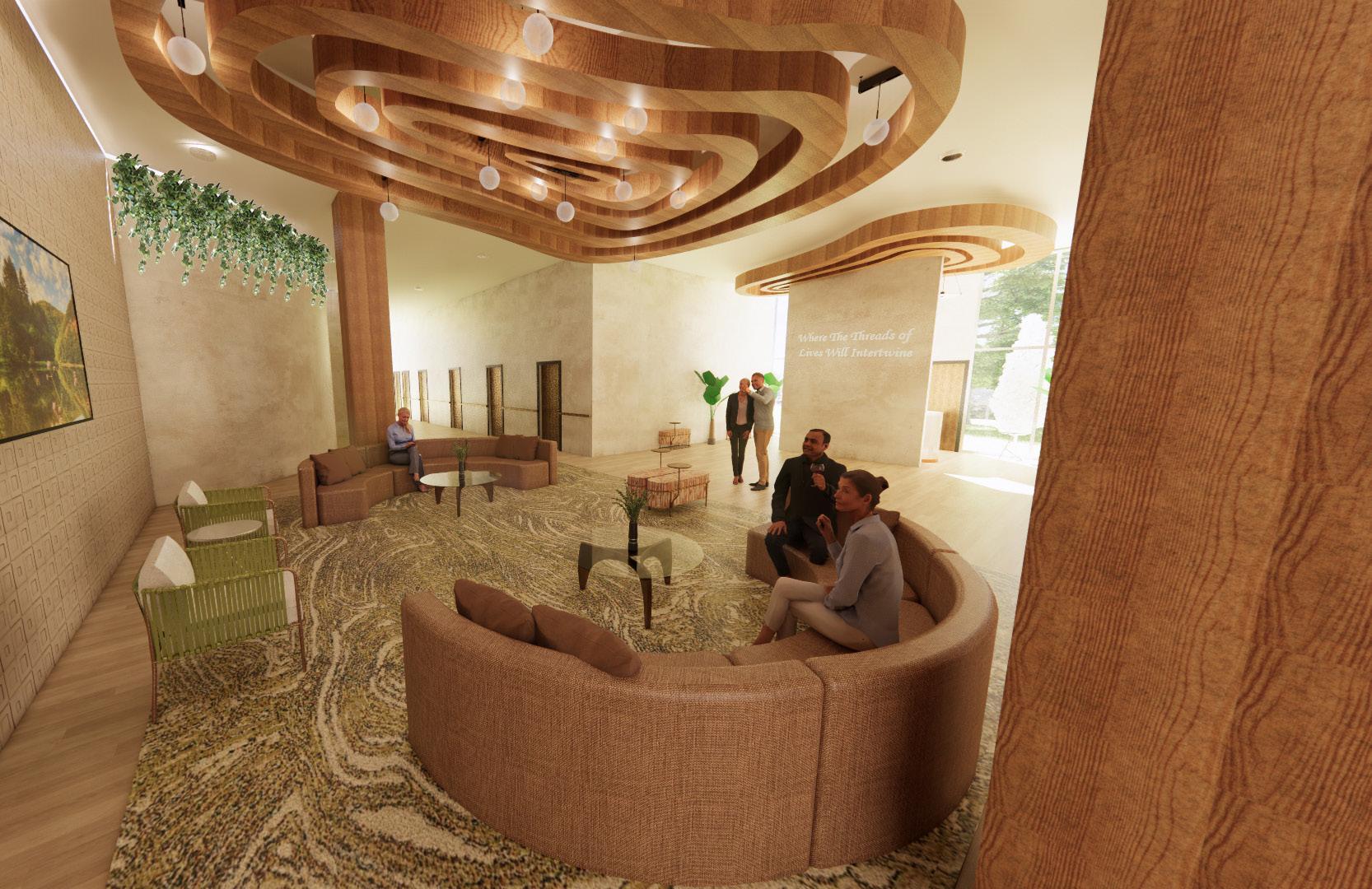 The concept of Nostalgic Serenity focuses on bringing the client back to their creative roots. Symbolic elements are placed throughout to create the sublime. By bringing the serene outdoor environment within the space with the use of texture. Proportion and scale are used to define the space to be a collaborative while creating unity. With Pops of bold colors to create emphasis and hierarchy. The use of Natural and Artificial light establishes balance and rhythm.