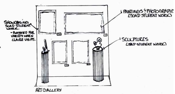 Students were assigned to design a residential space for SCAD alumni. At random the client selected for this project was Claire Rosen. The goal is to transform an already existing apartment into a creative vacation retreat. Where Claire can decompress from the busy world and unlock new inspiration for future projects. The final space should encompass a small vacation space allowing for her to come back to the roots of her creative career.