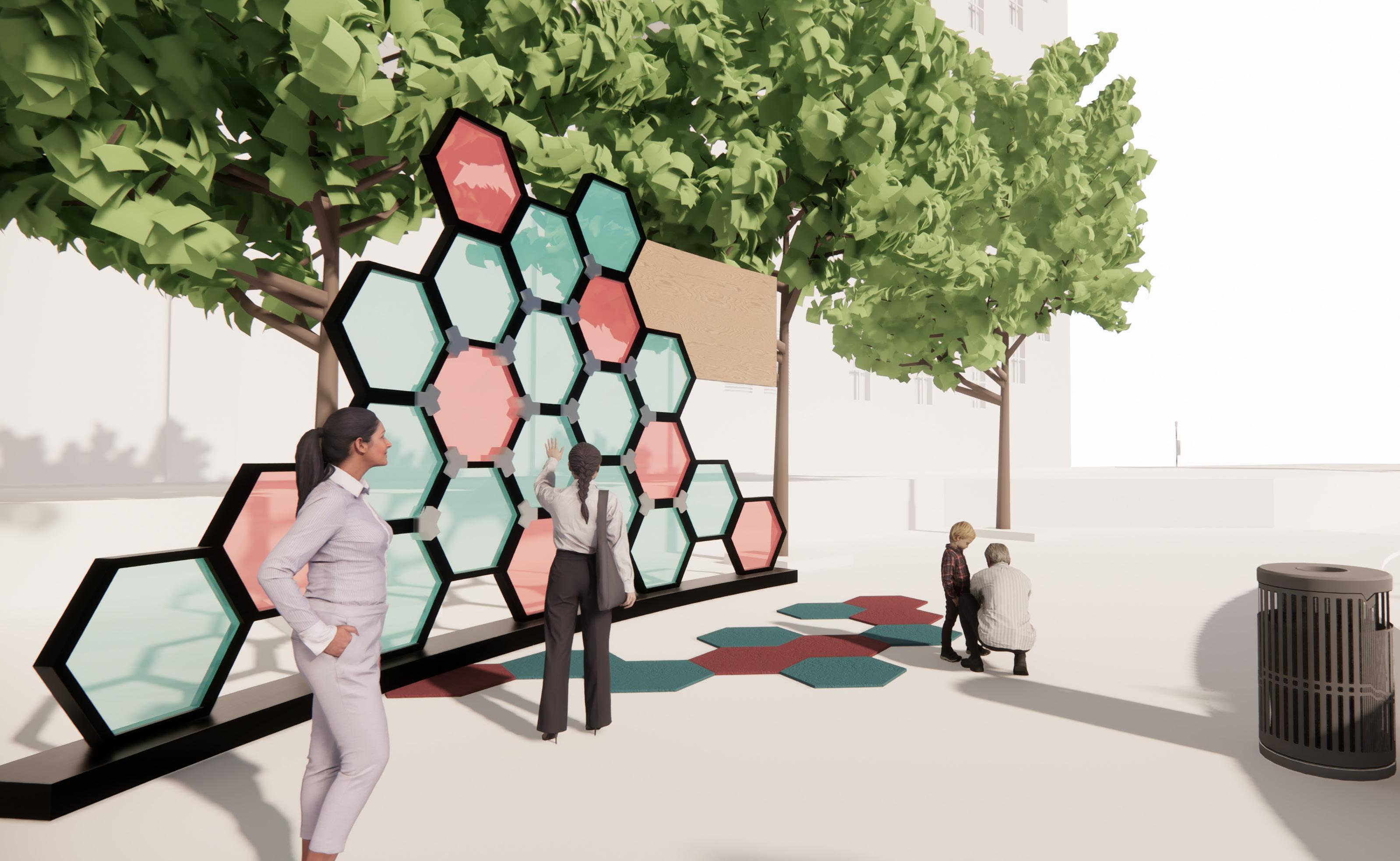 The goal of this proposal is to create a memorable space for visitors coming to Kansas City to watch the World Cup. The PlayFrame is interactble with engraved wording tellinf facts about each visiting team and some Kansas City history, its also memorable because it provides a photo oppurtunity for visitors so they’ll never forget they’re time in Kansas City.