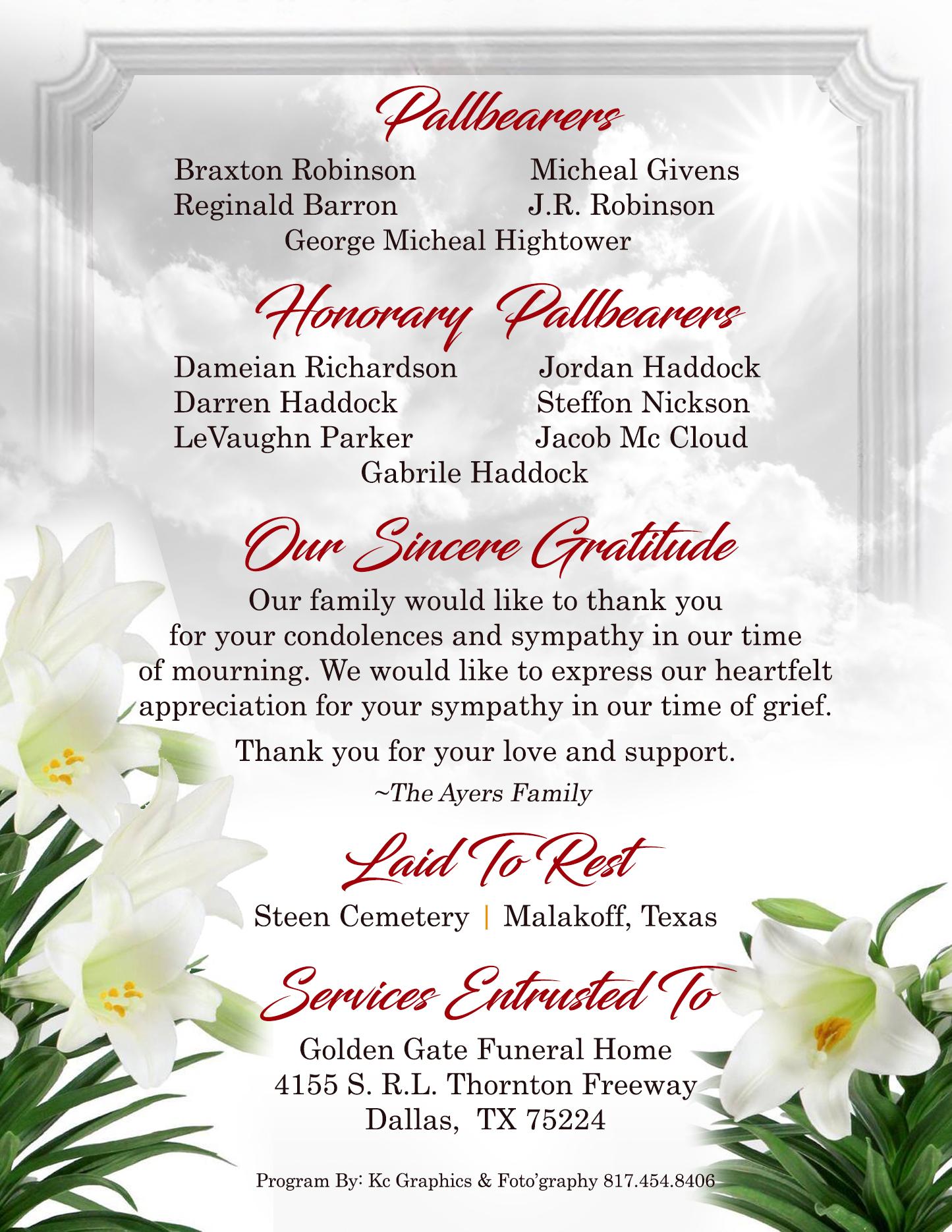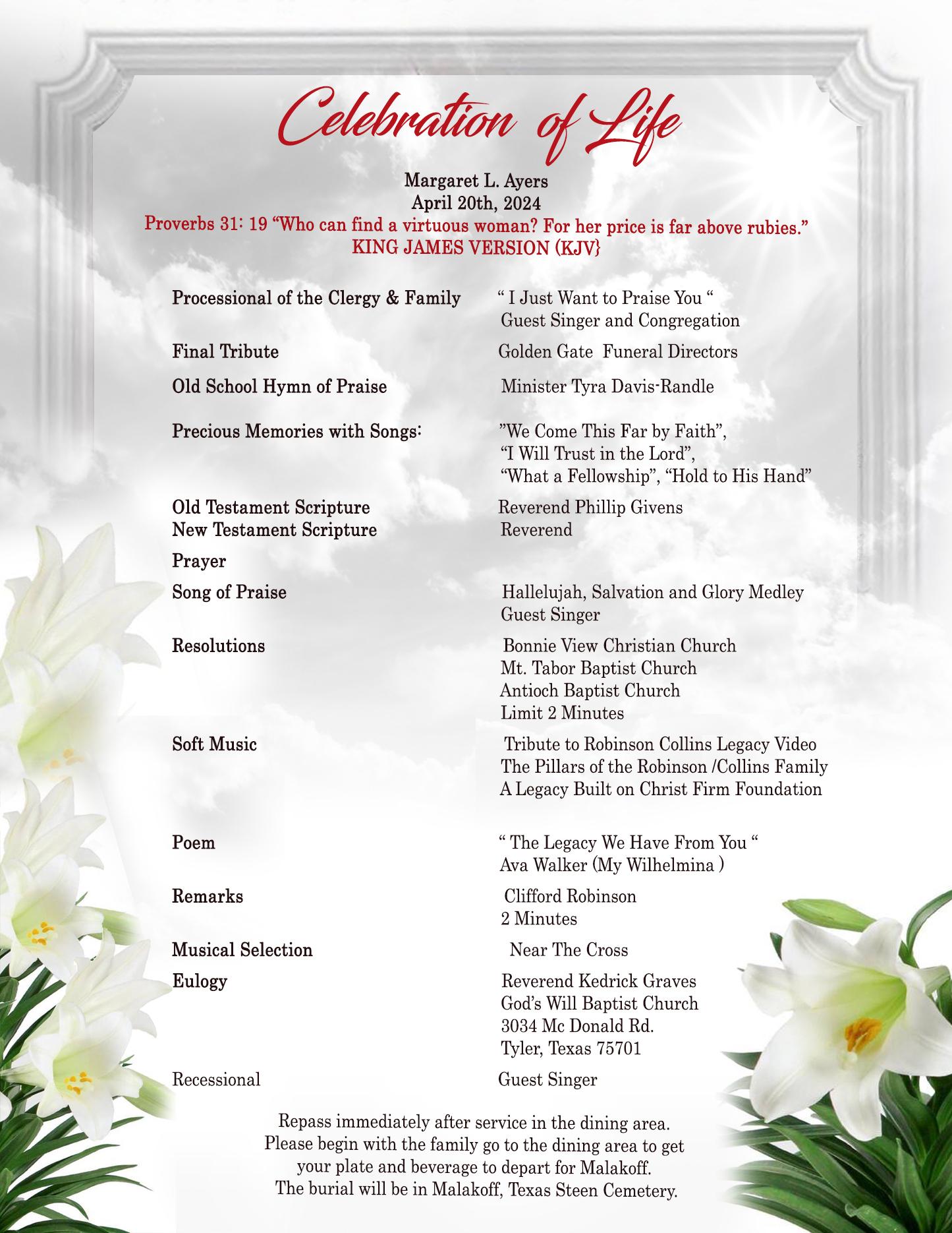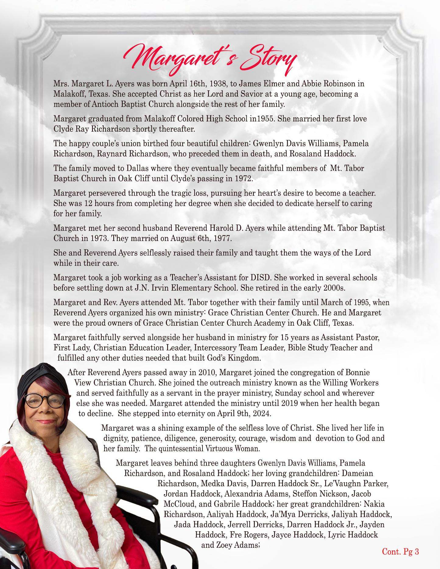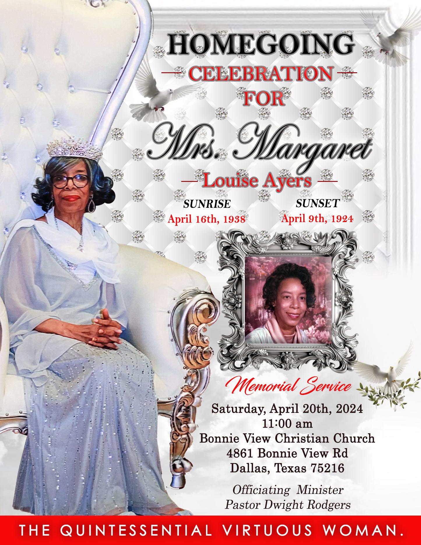 Homegoing Celebration ~Margaret Ayers