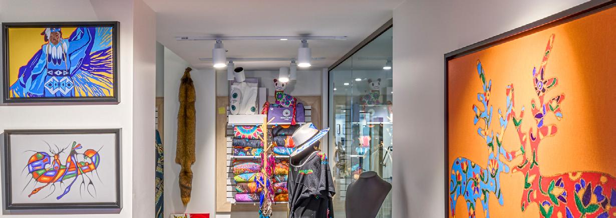 TNWAC opened the doors to our Social and Economic Innovation Centre, in Gatineau, Quebec, in 2022. The Centre serves as both our national headquarters and a cultural and economic hub for Indigenous people and community members. The five-storey building features Artisanelle, an in-house boutique that seeks to empower Indigenous women and gender-diverse entrepreneurs; a rotating art exhibition space featuring the work of Indigenous WG2STGD+ artists; and Café Bouleau, which serves Indigenousinspired cuisine.