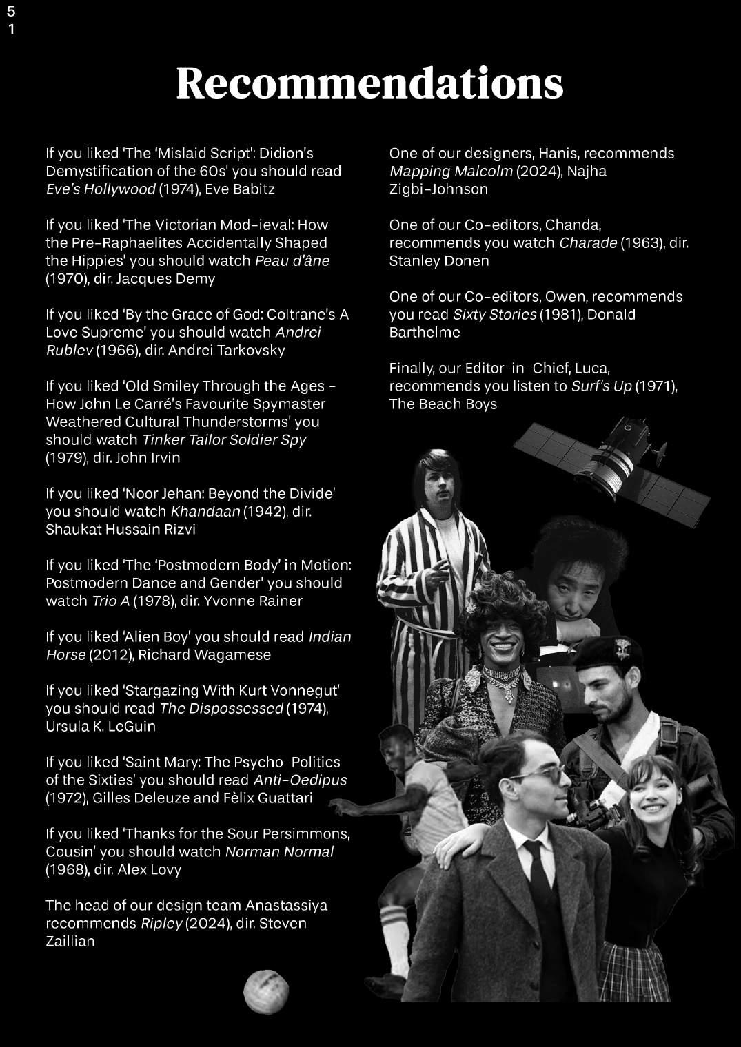 Ages in search of a more human way of living, idealising it as a time of spirituality and communal harmony. The Victorian era perhaps is one of the most memorable examples of this, as the Pre-Raphaelite Brotherhood transformed it into an era of chivalry, spiritual purity, and pastoral beauty. It is this romanticised Victorian vision, not the historical Middle Ages that the 1960s inherited, owing far less to the realities of the times than to the lingering influence of the Pre-Raphaelite fantasy. This deliberate historical inaccurac y, however, is telling of the decade, showing a generation not trying to return to a lost past, but instead boldly accepting its reshaping to imagine a freer, more hopeful future.