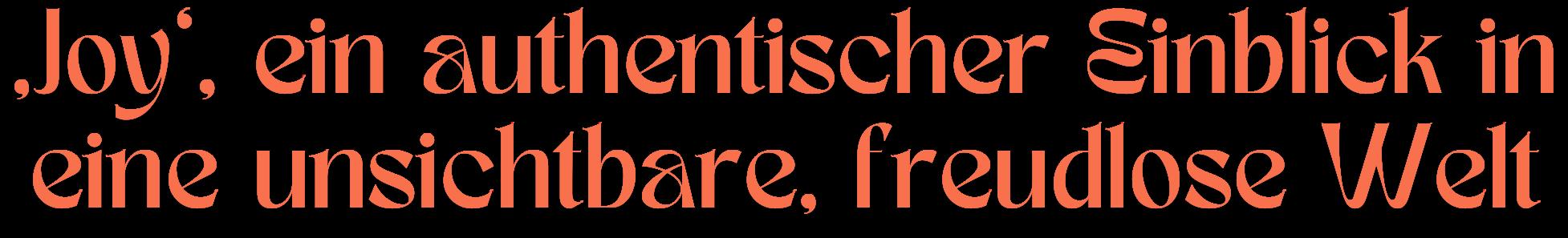 6 ‚Joy‘, ein authentischer Einblick in eine unsichtbare, freudlose Welt