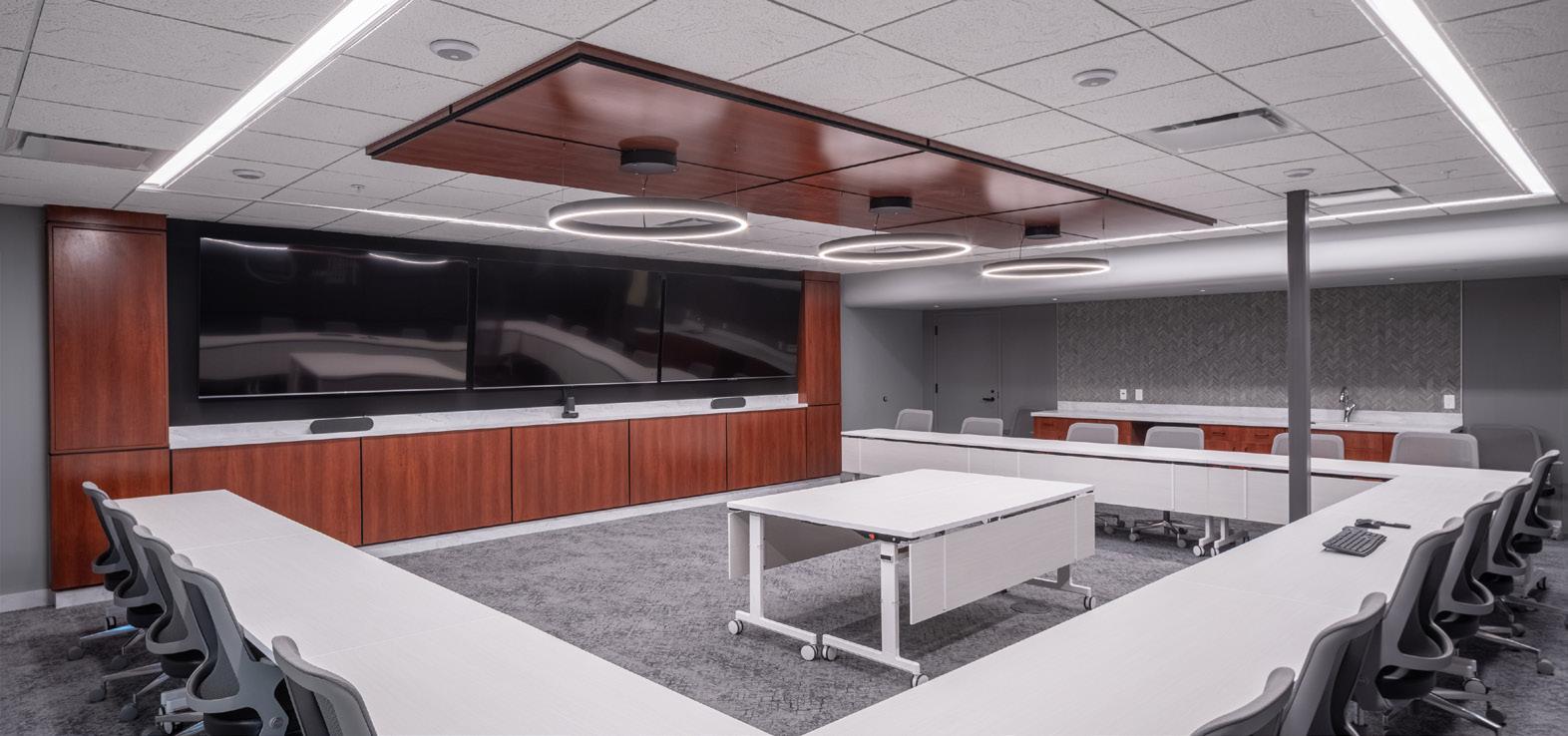 Additional revamped spaces in this T-Mobile corporate location include a more intimate pubstyle gathering area with tiled video wall and an “igloo” collaboration space with 360 degree projection and video conference integration