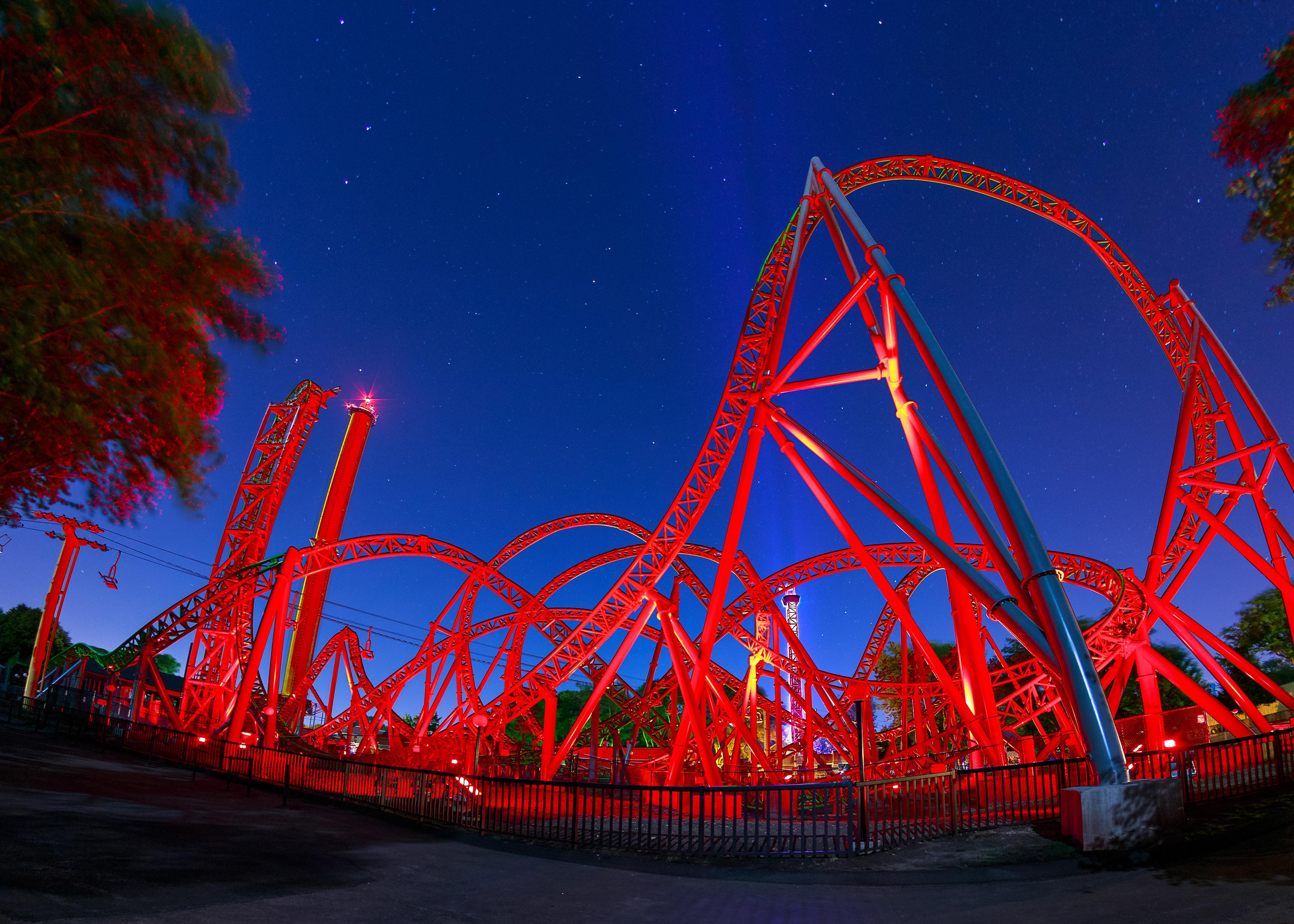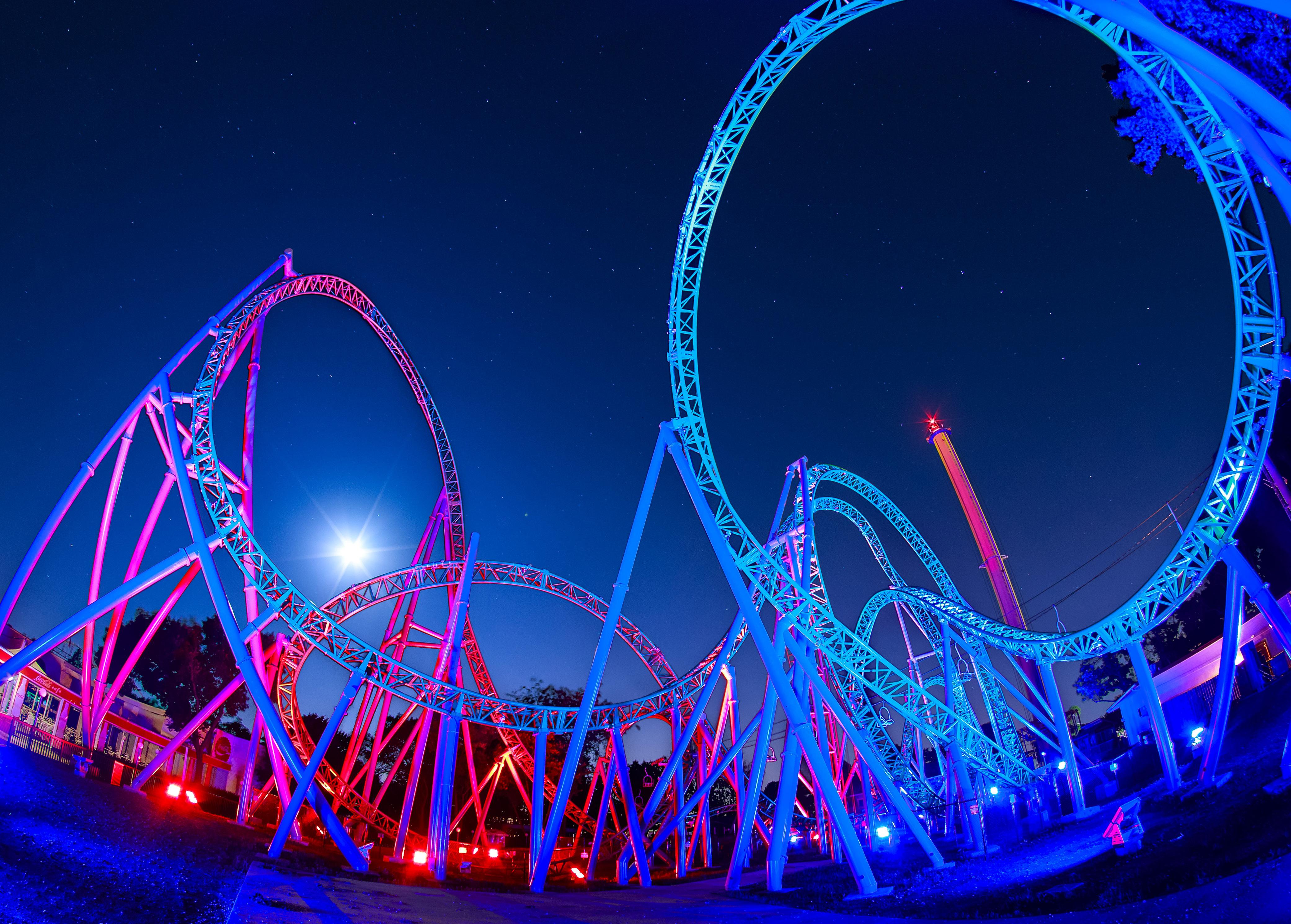 Ultimate theming was Knott’s Berry Farm’s vision for lighting Hangtime. From cool wave vibes to electric chasing effects, Hangtime is a show-stopper for on-ride and boardwalk patrons alike. Revenue-generating events like Knott’s Scary Farm, Peanuts Celebration, Boysenberry Festival, and Summer at Knott’s are intensified with thematic lighting. Manufacturer/type gerstlauer/euro-fighter