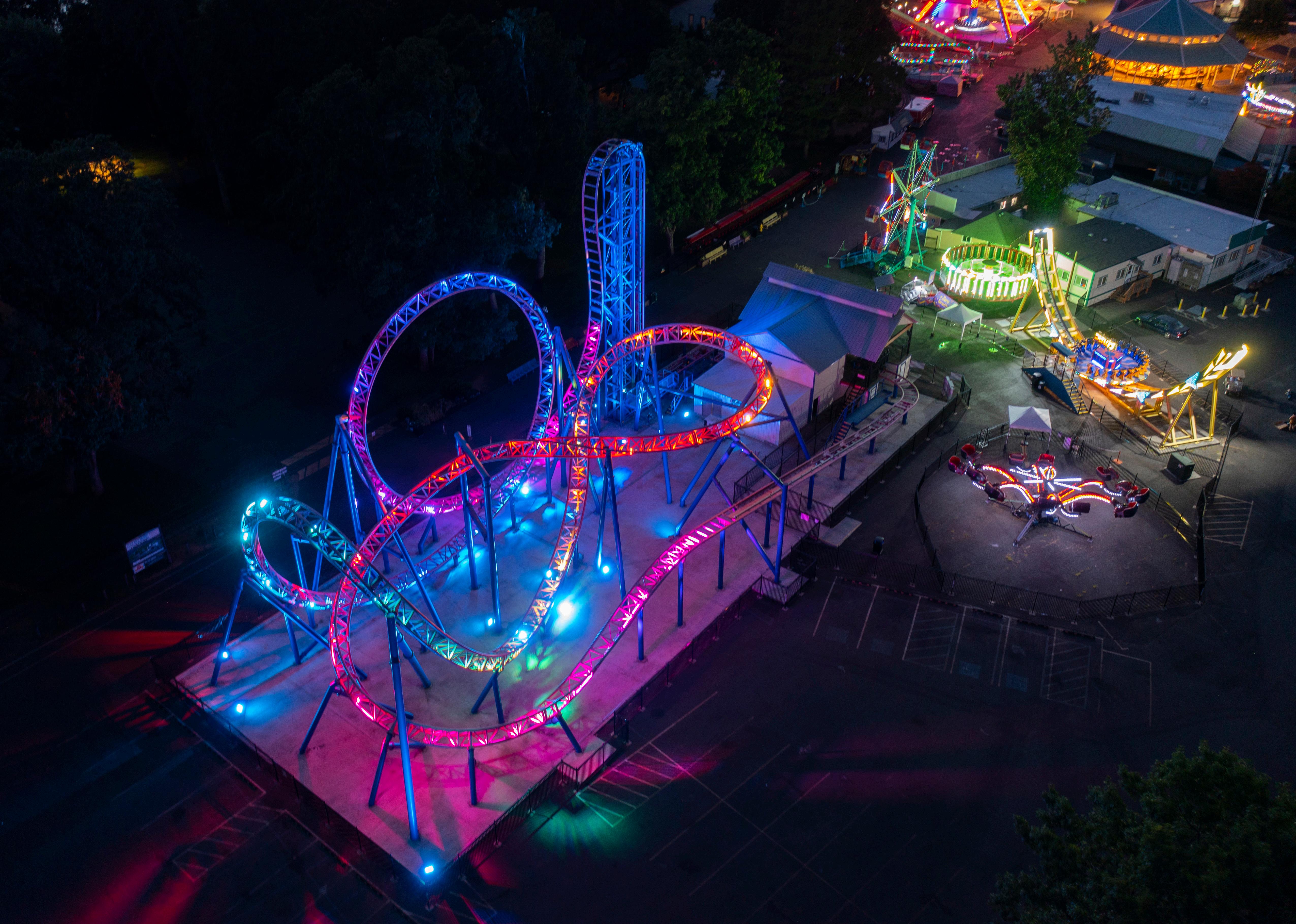 Opened in 1905, Oaks Amusement Park is one of the oldest continually operating amusement parks in the country. Dedicated to providing family fun to generation after generation, Adrenaline Peak was added in 2018 to appeal to thrill ride enthusiasts. The owners selected a dynamic track and ground-mounted programmable color-changing lighting system to enhance the patron experience.