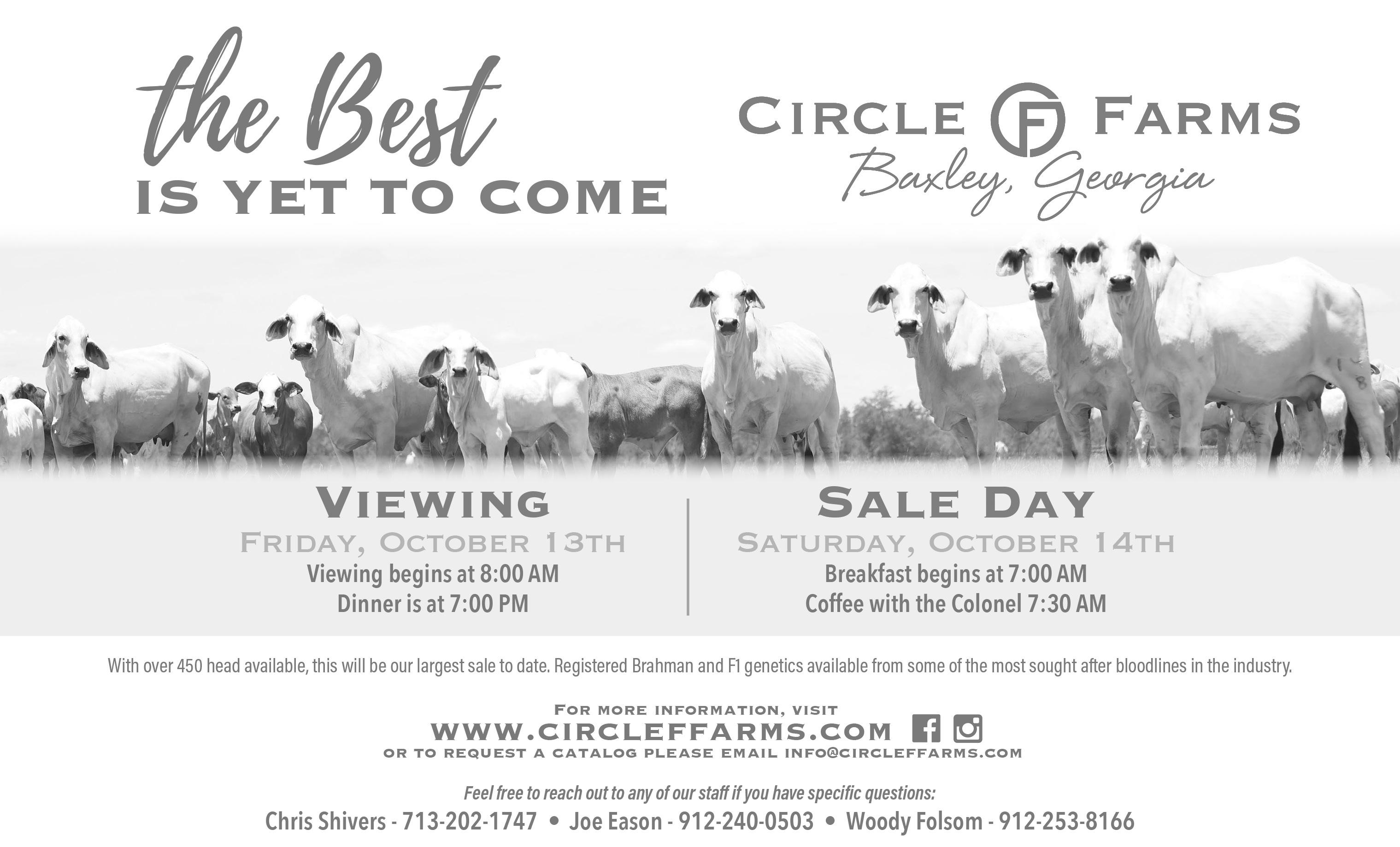 Oct. 14 — Circle F Farms Fall Sale, Baxley, Ga.