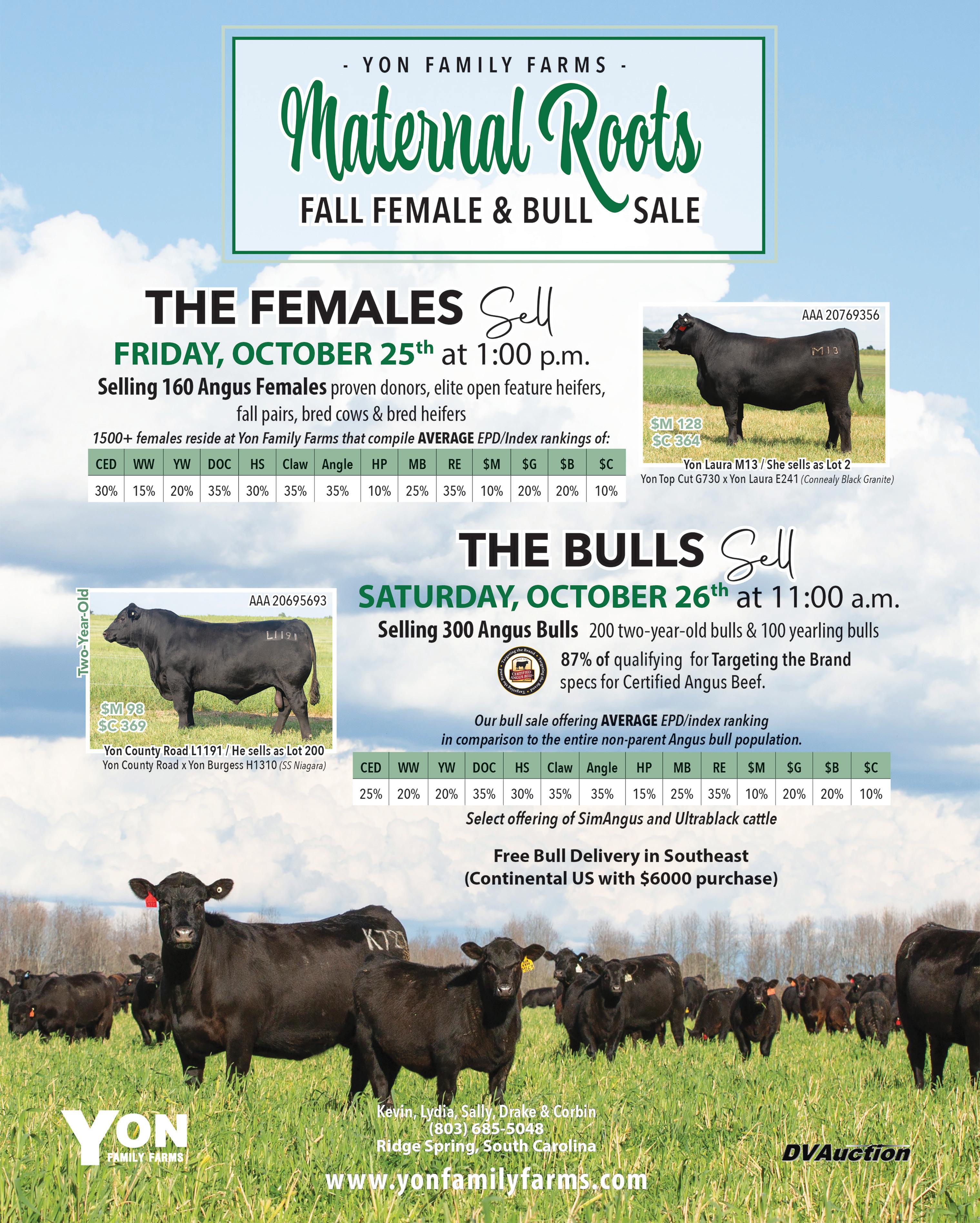 Oct. 26 — Yon Family Farms Maternal Roots Fall Bull Sale, Ridge Spring, S.C.