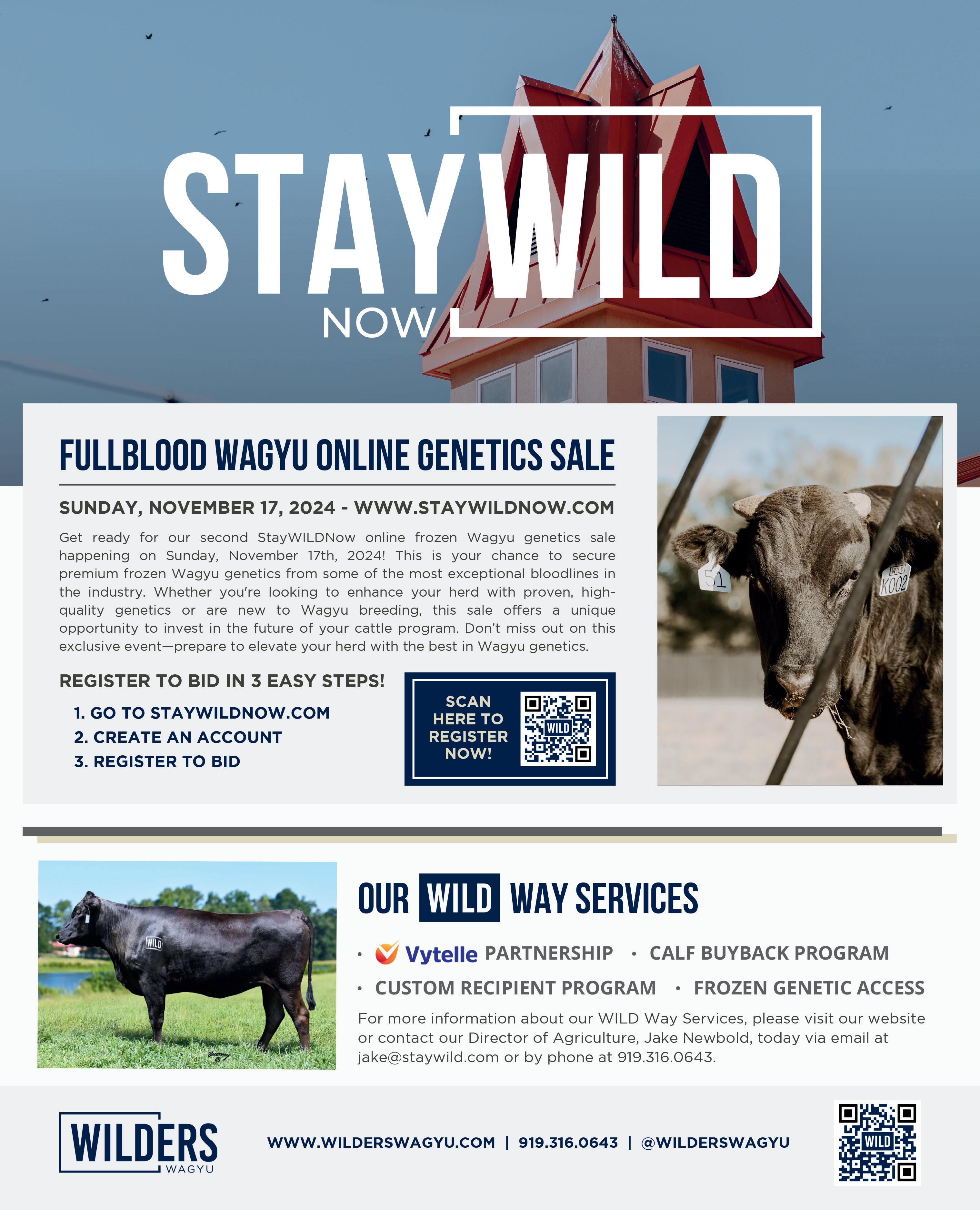 Nov. 17 — Wilders Wagyu StayWILD Now Fullblood Wagyu Online Genetics Sale